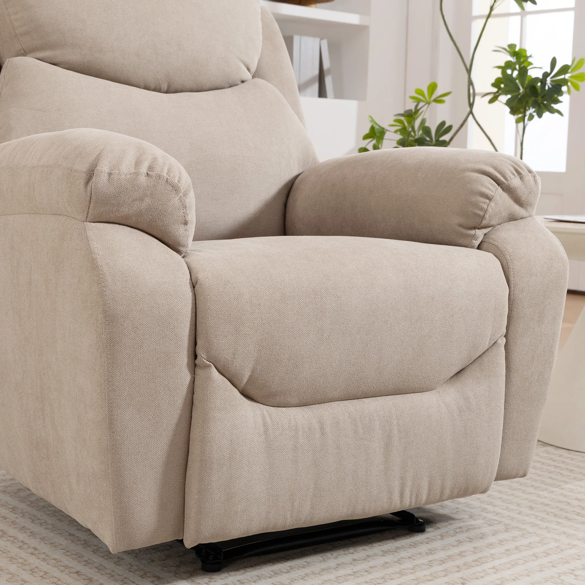 Laat alle stress van je afglijden en geniet van ultieme ontspanning in de [BRAND NAME] relaxstoel! Met de handmatige kantelverstelling tot 150° kan je moeiteloos achterover leunen en genieten van comfortabele momenten. De dik gevoerde zitting in linnenlook zorgt voor een heerlijke zitervaring. Het versterkte metalen frame van deze TV-stoel combineert stabiliteit met stijl, waardoor hij perfect is voor gezellige avonden en elke woonkamerinrichting.