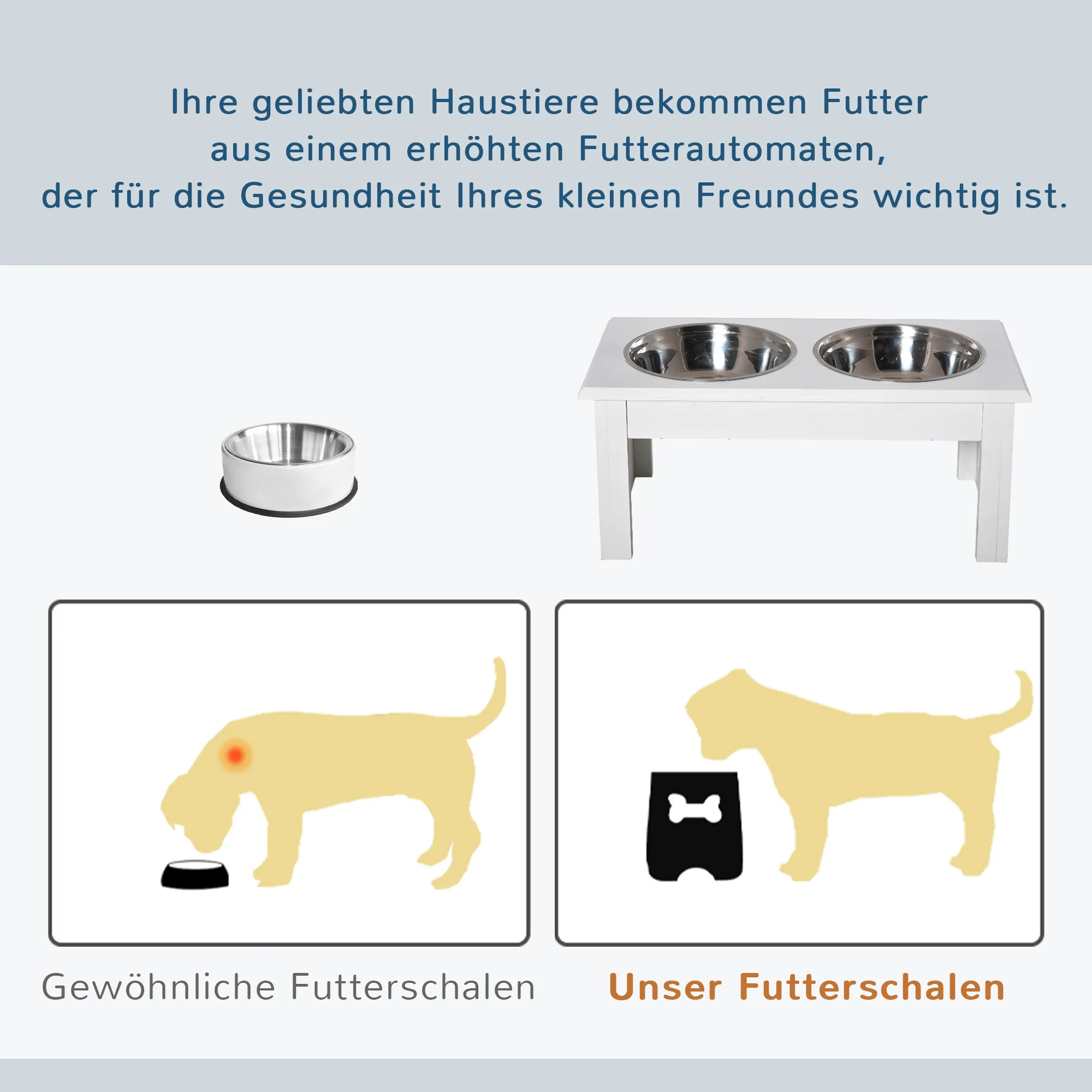 Verwen je trouwe viervoeter met het stijlvolle TRUUSK honden voerstation. Dit voerstation is voorzien van een stevige MDF-behuizing en twee hoogwaardige roestvrijstalen kommen. Deze kommen zijn niet alleen roestvrij en gemakkelijk schoon te maken, maar ook zeer hygiënisch en veilig voor je huisdier. De verhoogde stand zorgt voor een comfortabele eethouding en houdt het voer schoon. Een onmisbare toevoeging voor elk huishouden met honden.