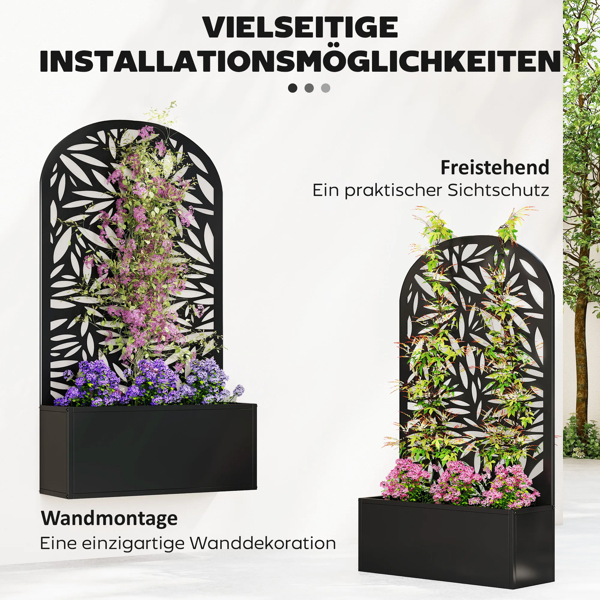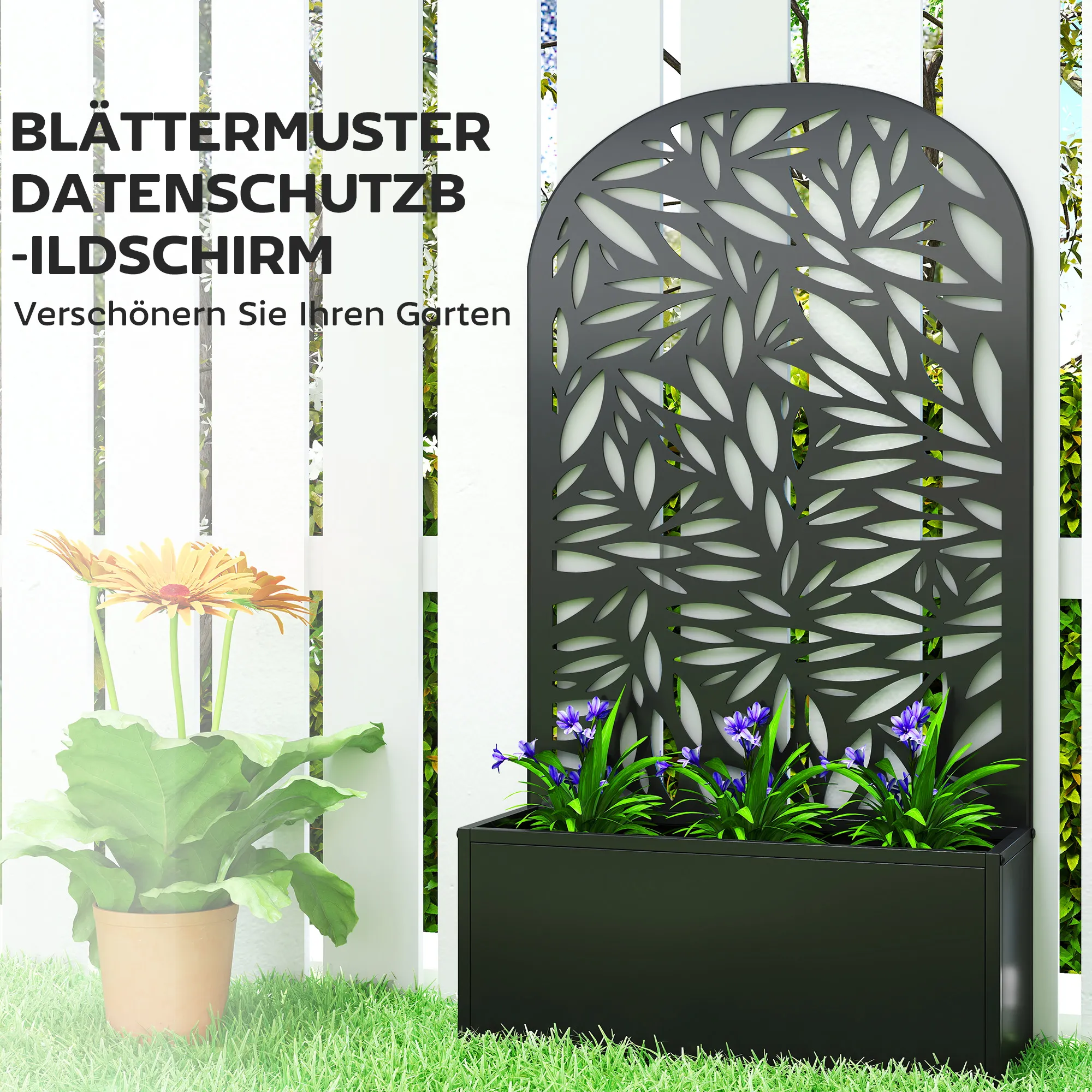 De [BRAND NAME] bloembak met klimrek is de perfecte aanvulling voor je tuin of balkon. Met het gebogen klimrek met bladpatroon heb je ruimte voor normale planten, bloemen en groenten, evenals een achterkant voor klimplanten. De plantenbak heeft een ruime afmeting van 21 x 58 cm en biedt plaats aan maximaal 29 liter aarde, waardoor je genoeg ruimte hebt om te tuinieren. Gemaakt van gepoedercoat metaal, is dit robuuste stuk perfect geschikt voor buitengebruik. Je kunt de bloembak vrijstaand plaatsen of aan een muur van je keuze bevestigen.