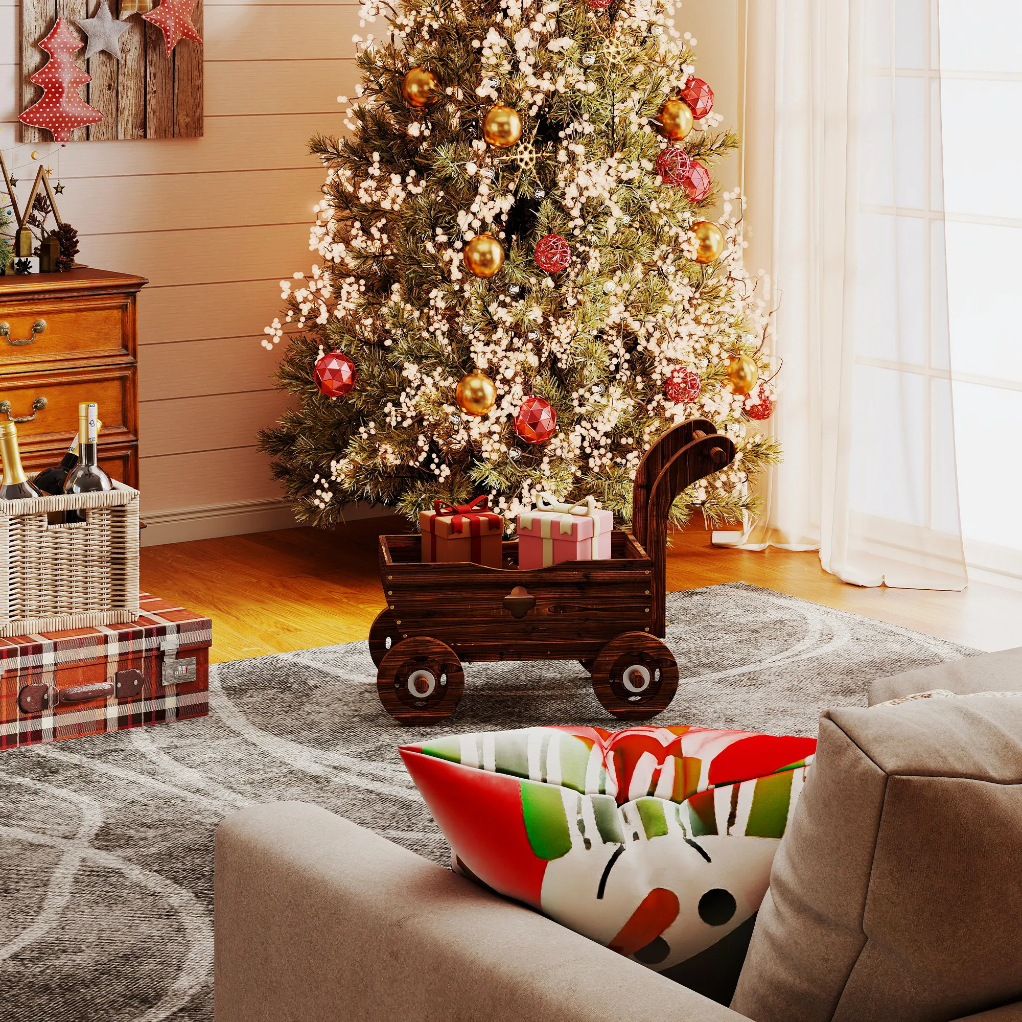 Hoogbed Hout, Plantenbed In Wagenvorm Kweekbed Met 4 Wielen Handvat Tuinbed 68 X 38 X 52cm