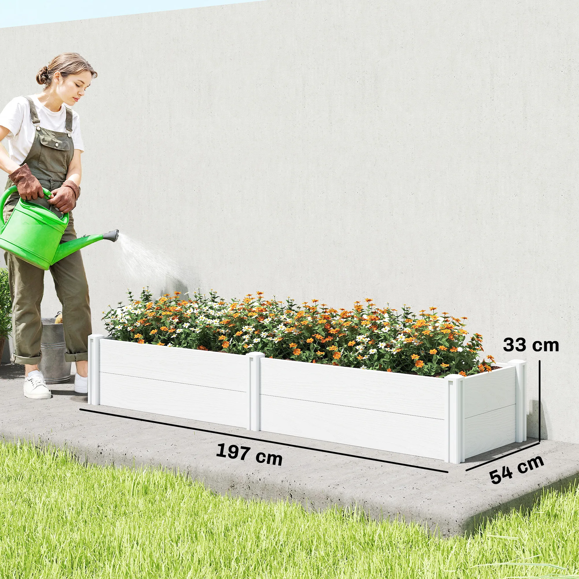 Richt je onderhoudsvriendelijke tuin in met plezier in het groeien. De [BRAND NAME] verhoogde plantenbak biedt gereedschapsvrije montage, robuust vinyl en een wortelvriendelijk ontwerp om problemen met constructie, afwatering en duurzaamheid op te lossen. Met zijn ruime ontwerp kun je groenten, bloemen, kruiden of sierplanten kweken. Deze verhoogde plantenbak maakt tuinieren gemakkelijker, schoner en aangenamer.