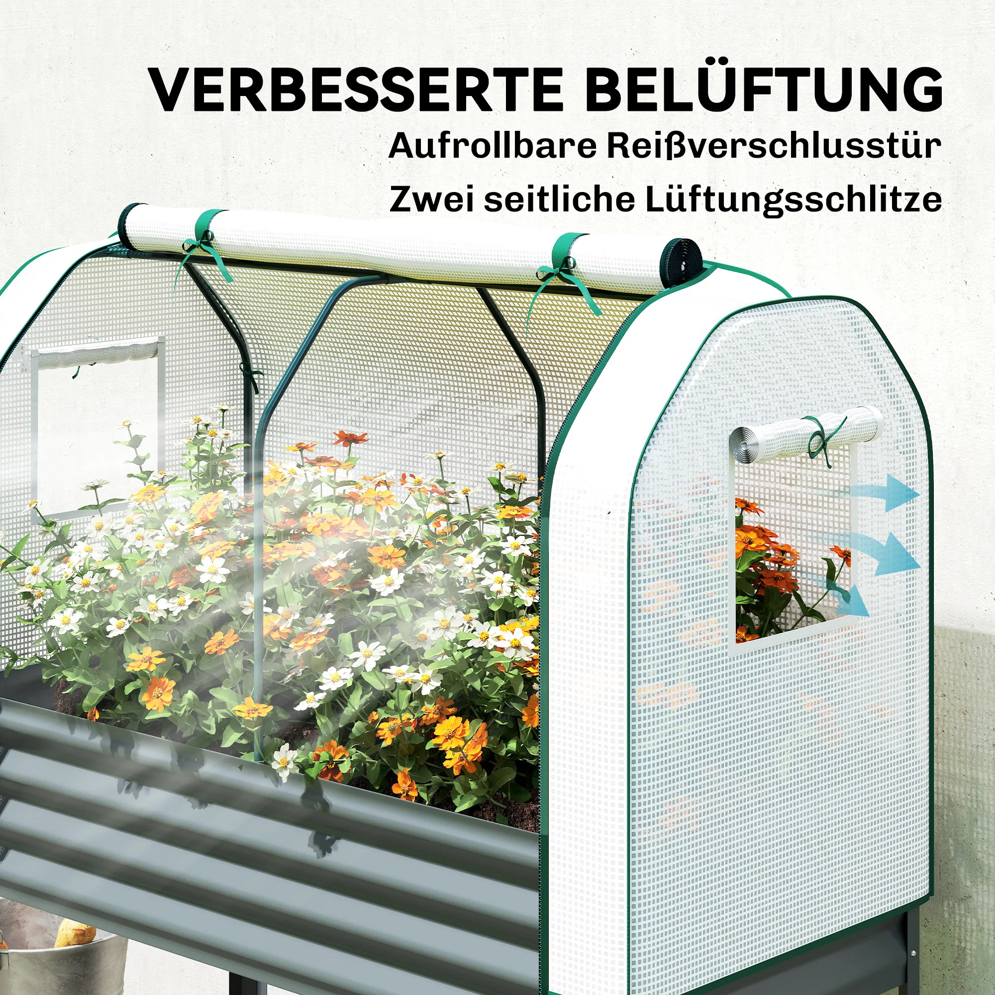 - Bescherming en groei: 140 g/m² PE-kasafdekking beschermt en bevordert de groei van je planten