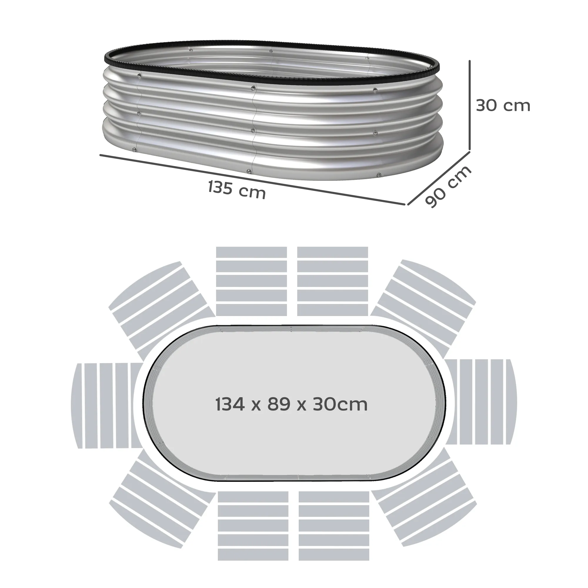 Hoogbed Metaal 2-delige Set 135 X 90 X 30cm Ovaal Hoogbedden Met Rubberen Strips