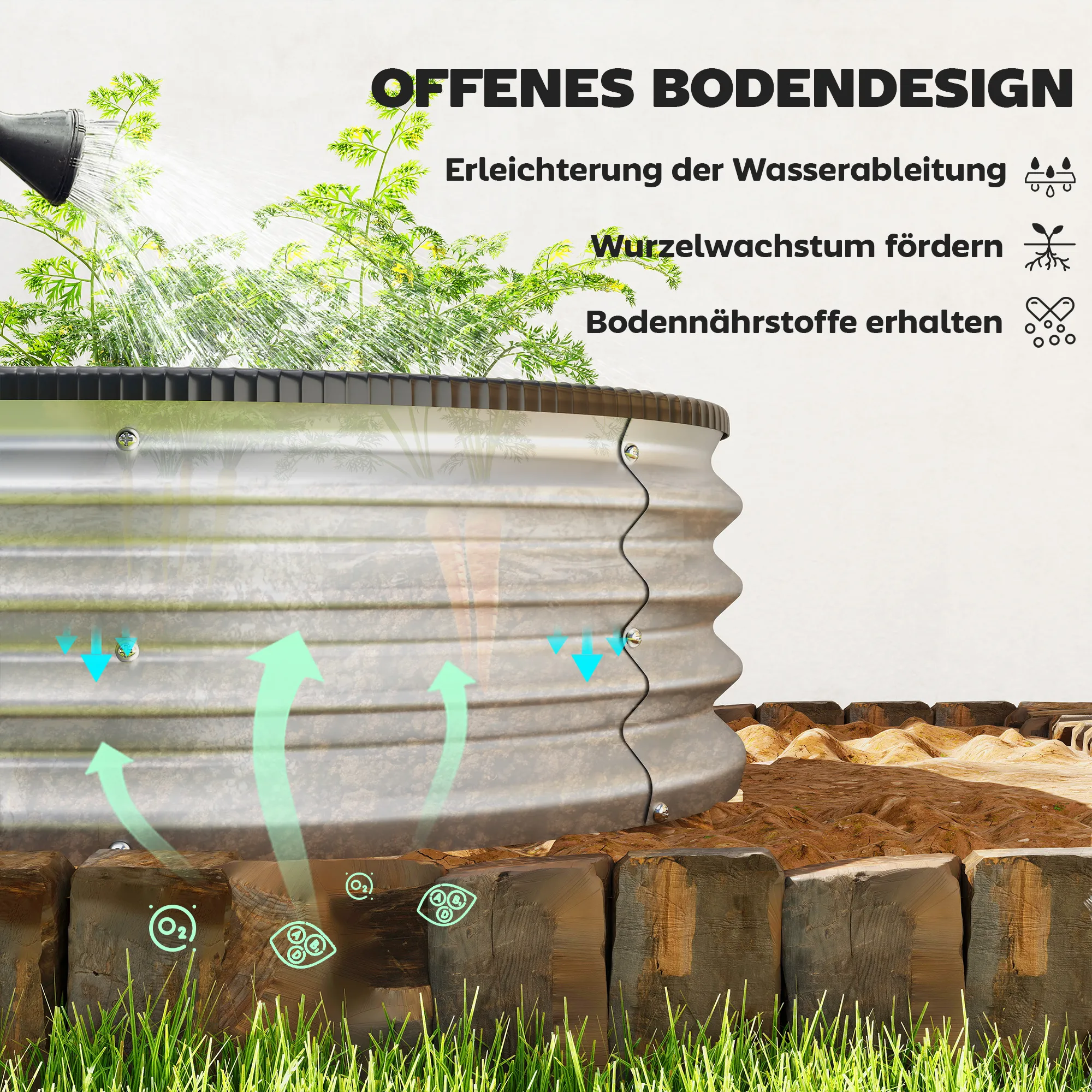 • Diepe plantenruimte: perfect voor groenten, kruiden en bloemen