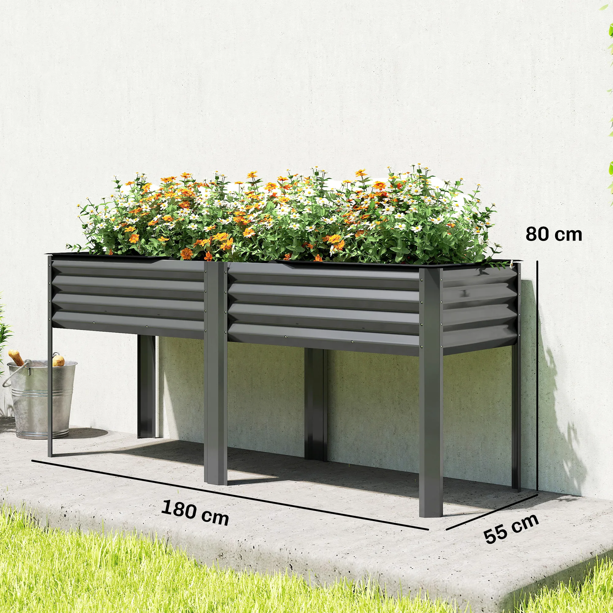Ontwerp moeiteloos jouw droomtuin met de [BRAND NAME] verhoogde plantenbak. De extra grote plantenruimte van 179 x 54 x 25 cm biedt genoeg ruimte om een variëteit aan groenten, kruiden en bloemen op één plek te kweken. De gegolfde, gegalvaniseerde panelen van de balkon plantenbak maken een snelle en stressvrije montage mogelijk, zodat je minder tijd aan de opbouw hoeft te besteden en meer tijd aan jouw weelderige en bloeiende tuin.