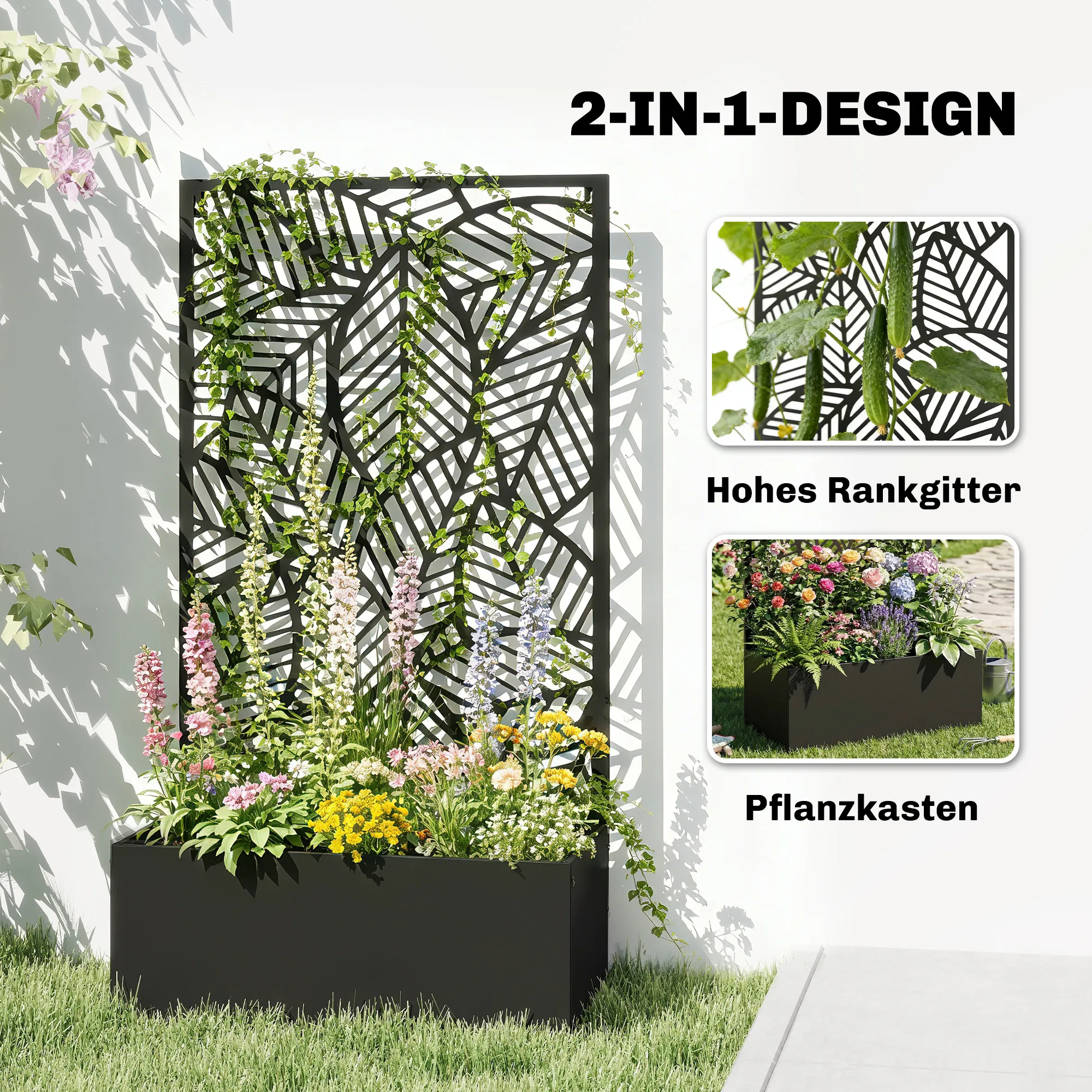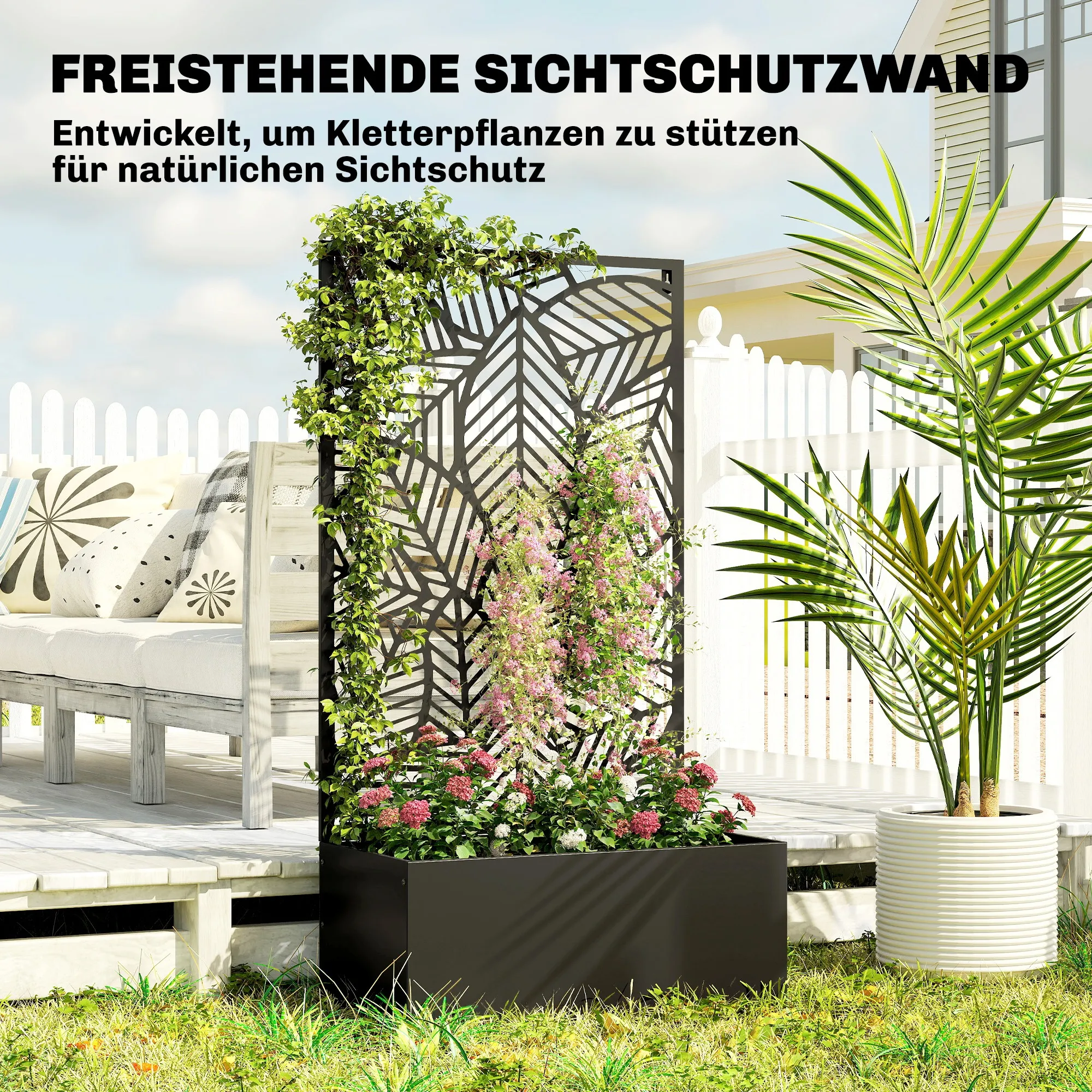 • Privacypaneel met bladuitsneden: fungeert als klimrek voor je planten