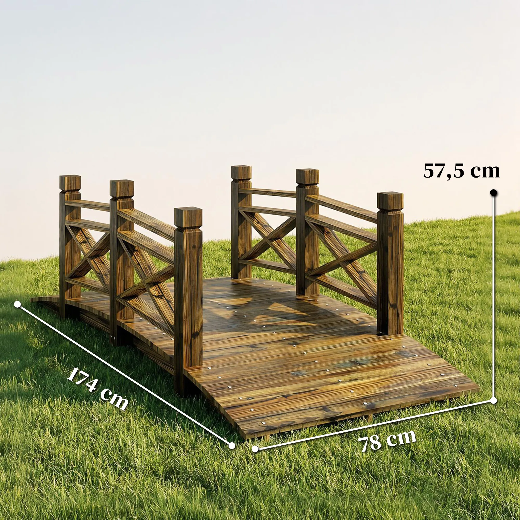 Maak je wandelingen rond de vijver veiliger en stijlvoller met de [BRAND NAME] tuinbrug. Deze boogbrug met een draagvermogen tot 200 kg en stevige palen biedt betrouwbare ondersteuning, zelfs op regenachtige ochtenden. De 42 cm hoge veiligheidsleuningen zorgen voor extra grip en de gekarboniseerde Shou Sugi houtconstructie is weerbestendig en rotbestendig, waardoor deze brug seizoen na seizoen meegaat.