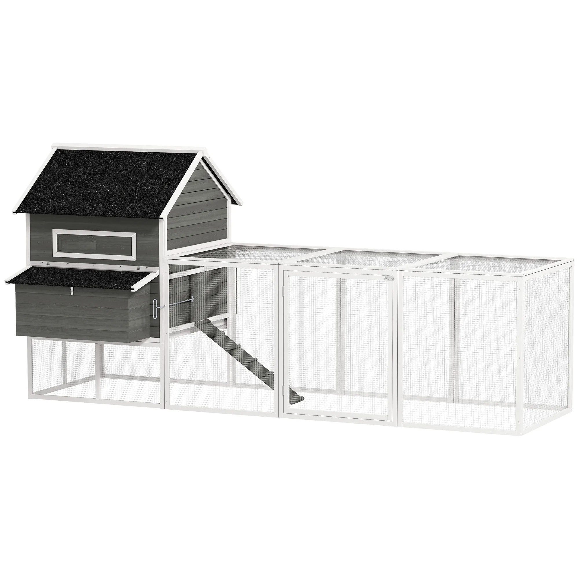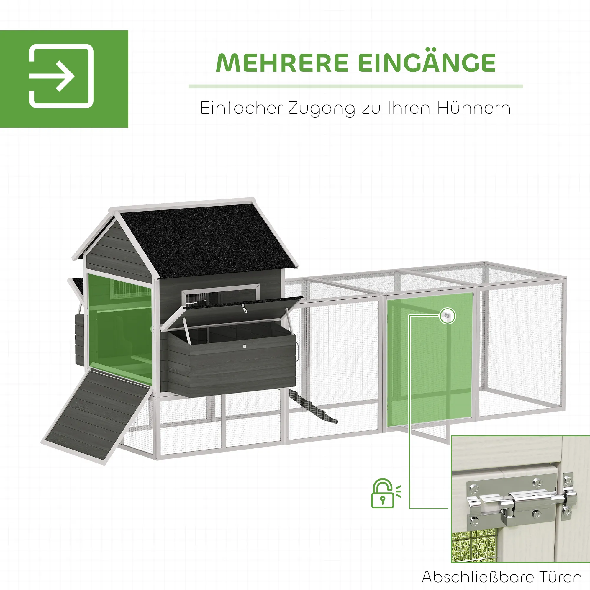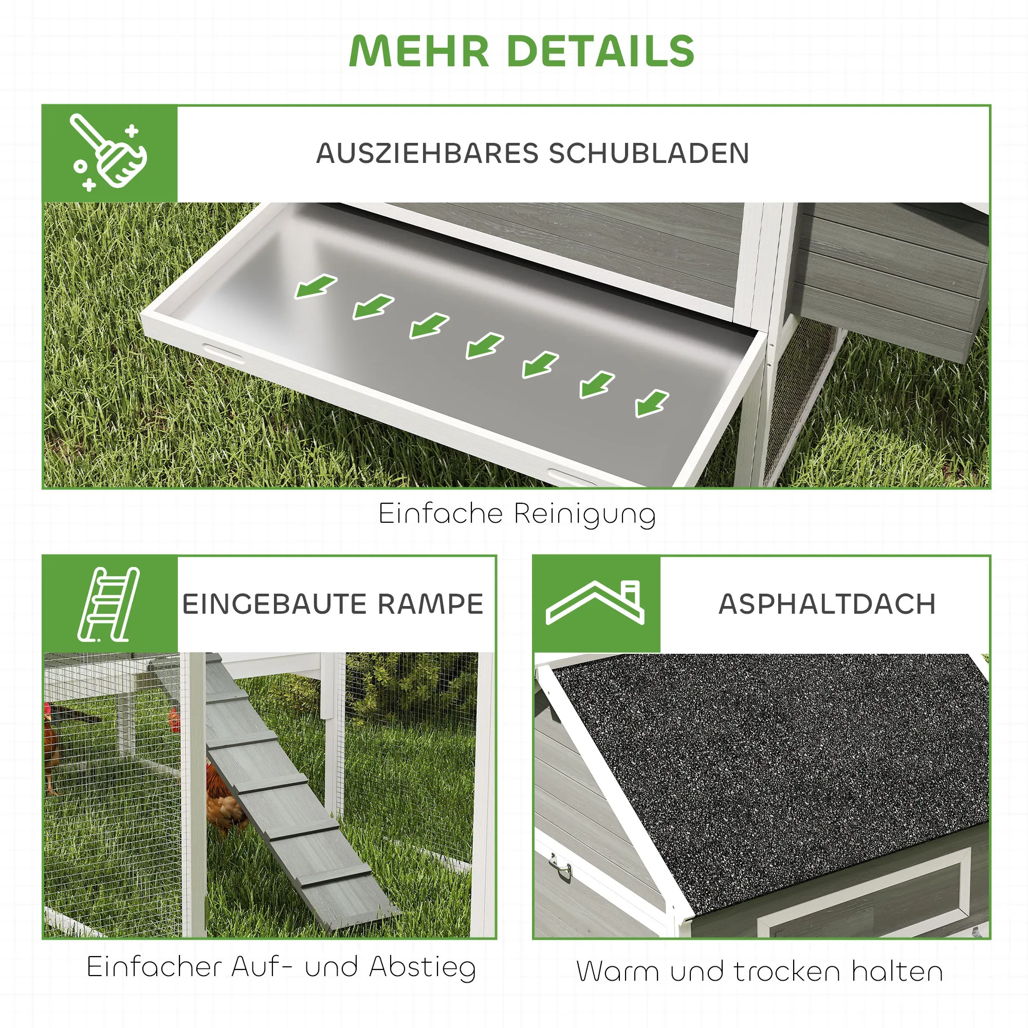 Houten Kippenhok Met Ren, Legnest, Asfaltdak, Uitschuifbaar Dienblad Voor 8-10 Kippen 347x160x150 Cm Donkergrijs