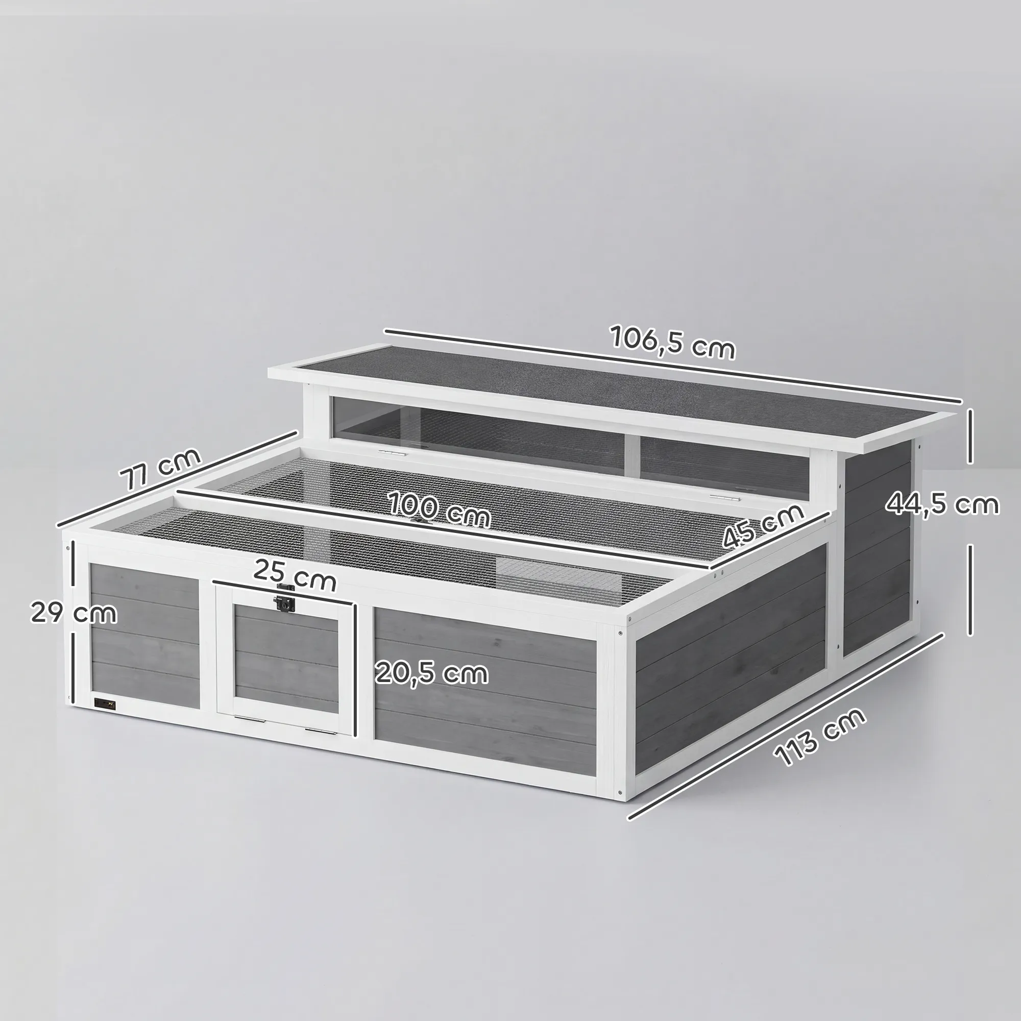 Geef jouw huisdier een veilig en comfortabel verblijf in de tuin met het [BRAND NAME] schildpaddenverblijf. Dit verblijf is speciaal ontworpen met een tweezones-indeling: een gezellig huisje voor rust en een ruime vrije uitloop voor overdag. Het gegalvaniseerde draadgaas zorgt voor ventilatie en zonlicht, terwijl het jouw huisdier veilig houdt. Met twee deuren en een grote opening aan de bovenkant is het voeden, schoonmaken en verzorgen van jouw huisdier gemakkelijk en handig.
