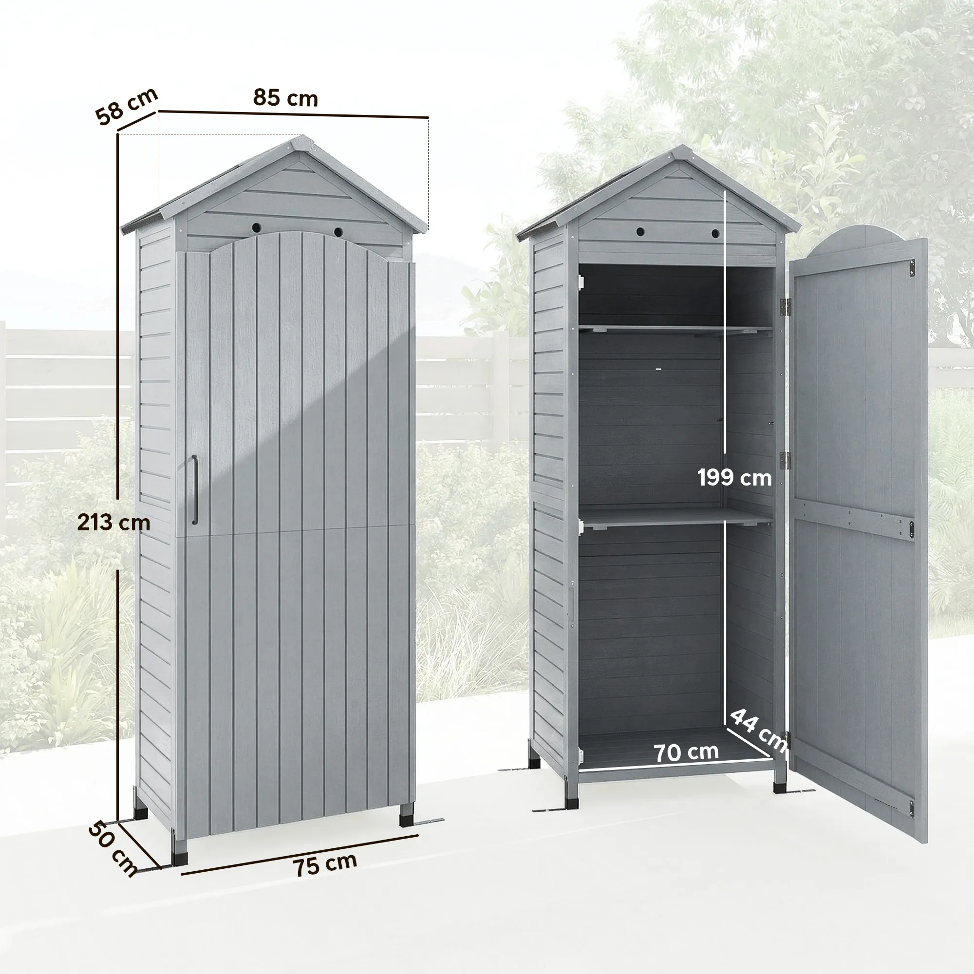 Houten Tuinkast Extra Hoge Gereedschapsschuur Met Verstelbare Plank Magnetische Deur Gegalvaniseerd Dak Ventilatie