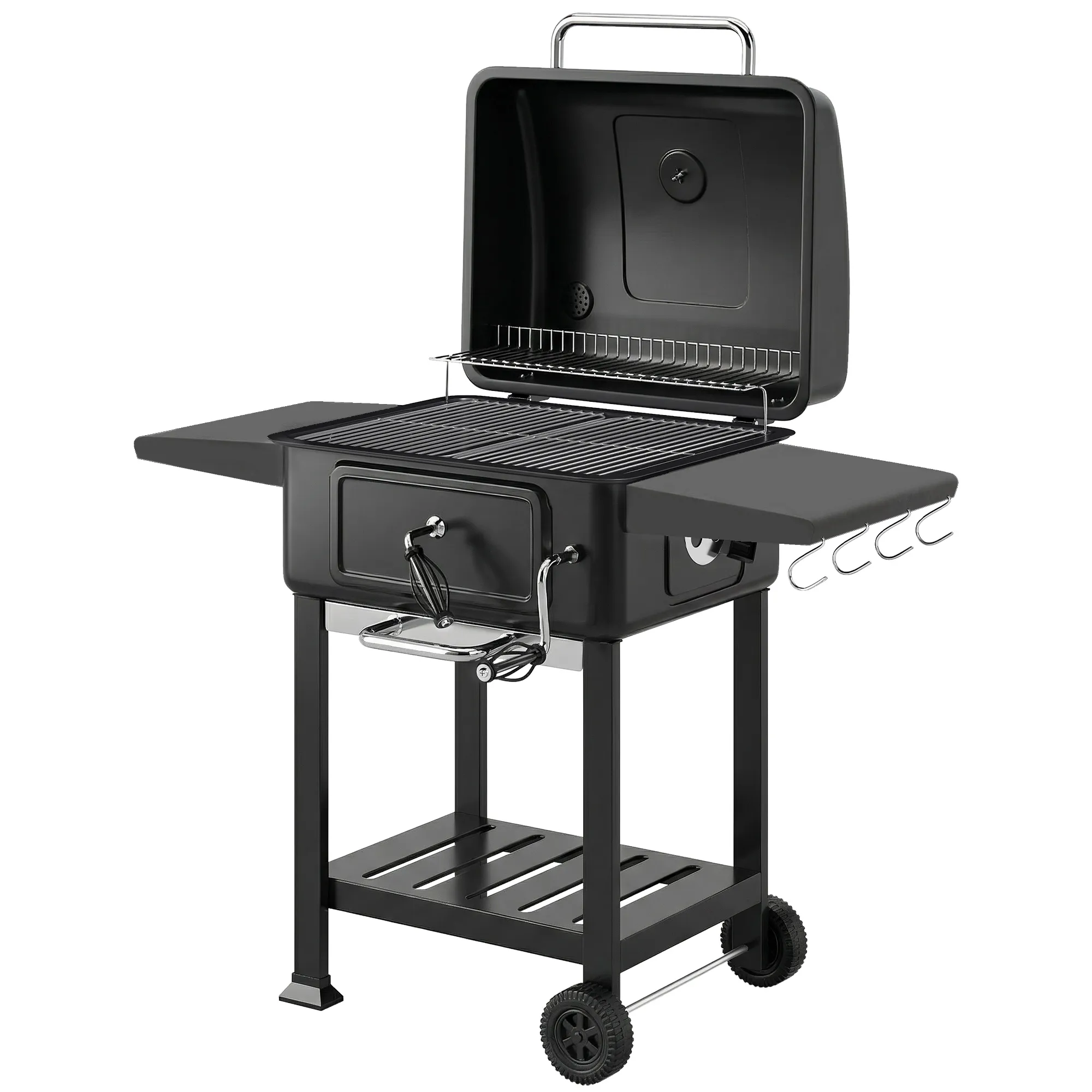 Houtskoolgrill BBQ Smoker Met Deksel Thermometer In Hoogte Verstelbare Kolenpan Schoorsteen Grillrooster Zijtafel Asbak