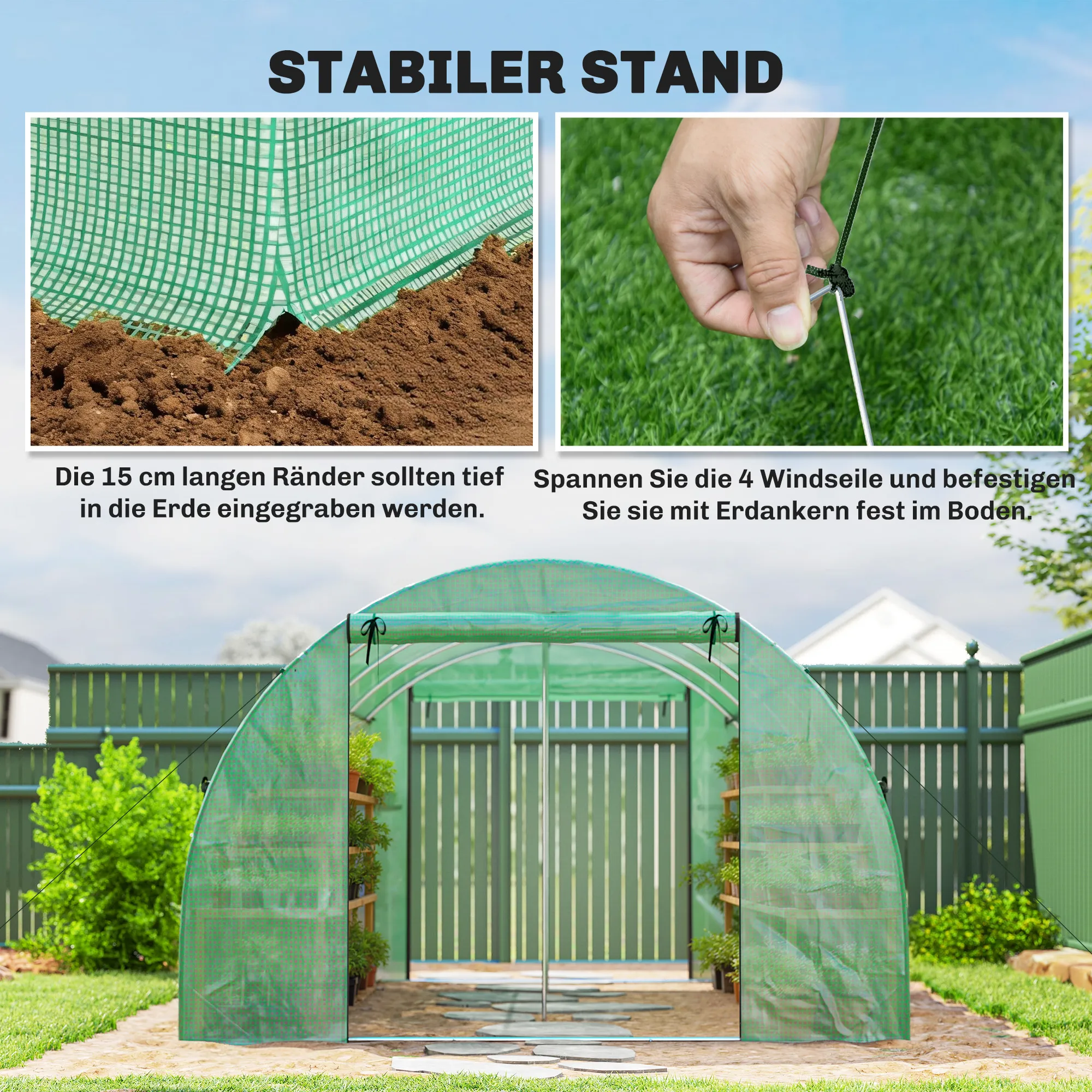 Kas Ca. 4 X 3 X 2 M Kas Met Rolbare 2 Ritssluiting Deur & 8 Netvensters Steunstangen Groen