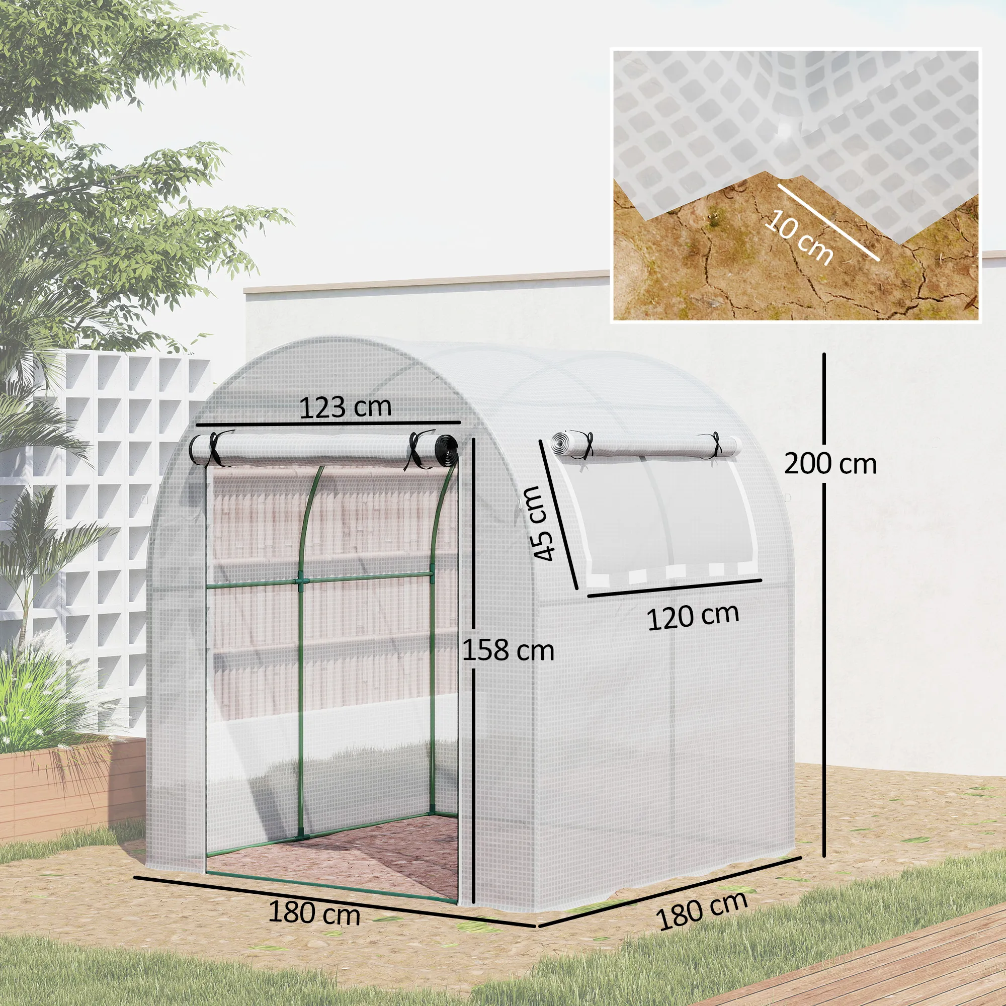 Met de draagbare [BRAND NAME] kas verleng je eenvoudig het teeltseizoen en geef je jouw planten de beste groeiomstandigheden. Het robuuste stalen frame van de folietunnel, compleet met scheerlijnen en haringen, zorgt voor stabiele ondersteuning. Met een afmeting van 6 x 6 voet biedt deze folietunnel voldoende ruimte voor jouw planten en kan naar eigen wens worden ingericht. De oprolbare deur en zijraam zorgen voor gemakkelijke toegang en optimale ventilatie.