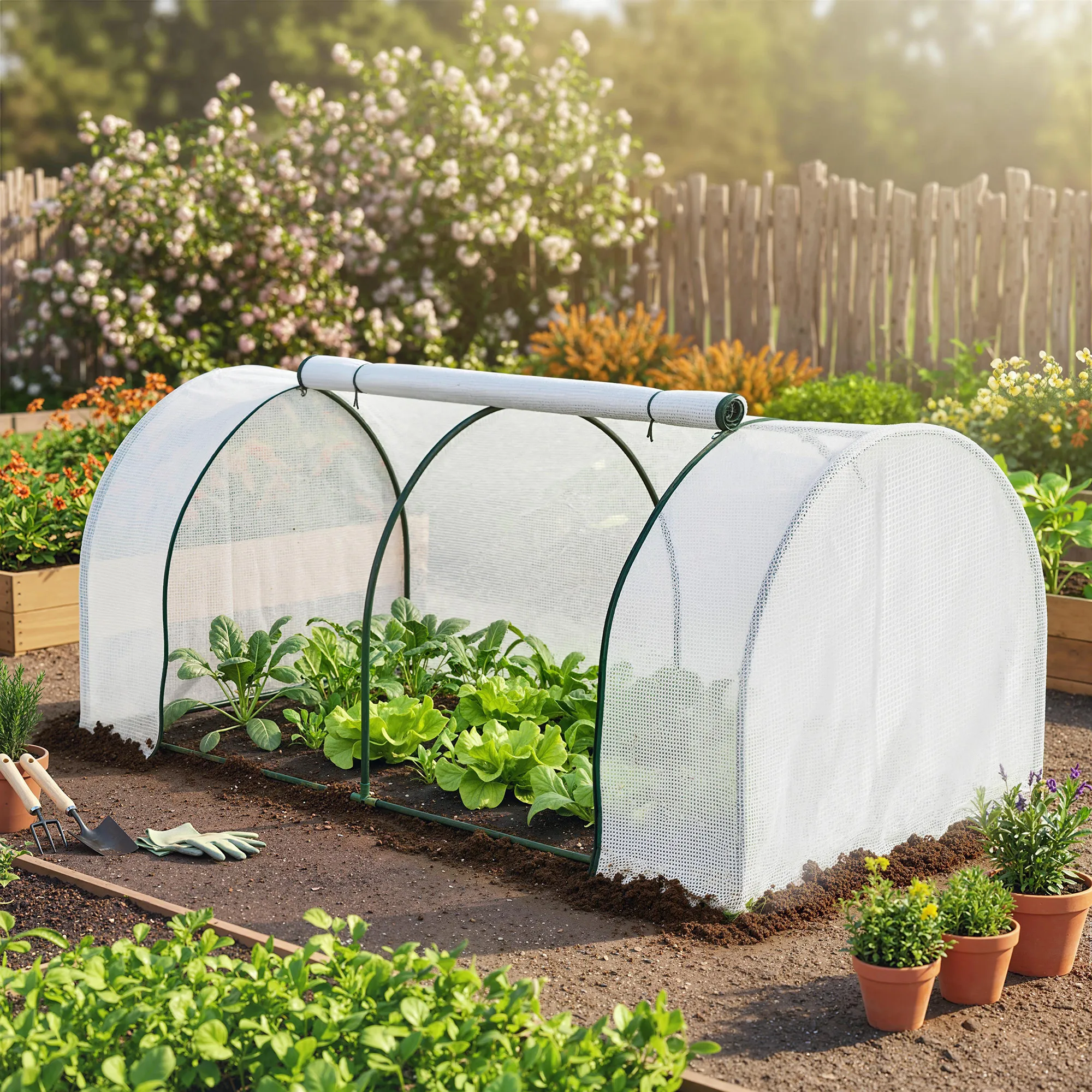 Wil je het hele jaar door tuinieren? Kies dan voor een draagbaar [BRAND NAME] tuinkas voor in de tuin of op het terras. Zaai zaailingen, creëer tropische omstandigheden en controleer warmte en vochtigheid met ritssluitingen. Licht, flexibel en mobiel, beschermt het tegen regen, kou, wind, UV-stralen, onkruid en wilde dieren. Ideaal voor al jouw tuinbehoeften.