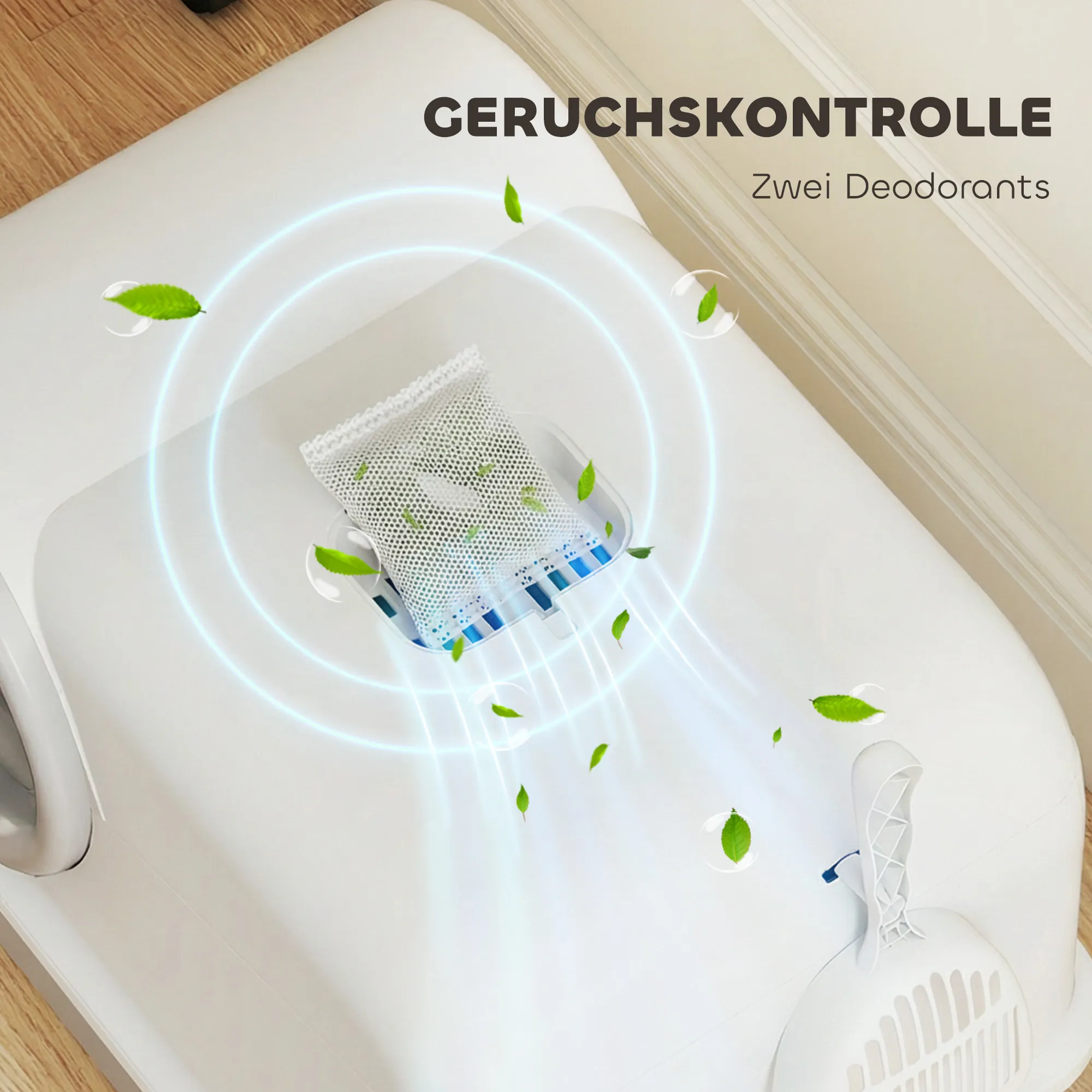 • Geurcontrole: twee actieve koolpakketten neutraliseren geuren effectief