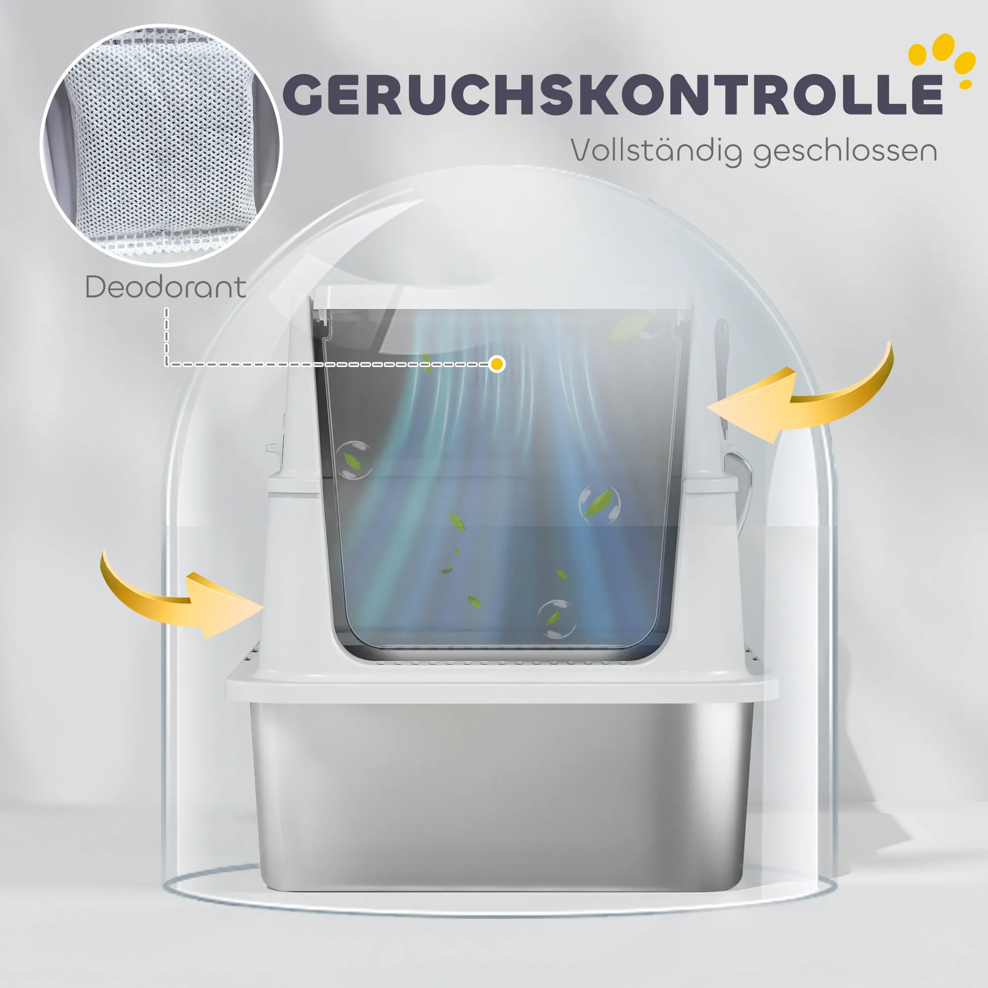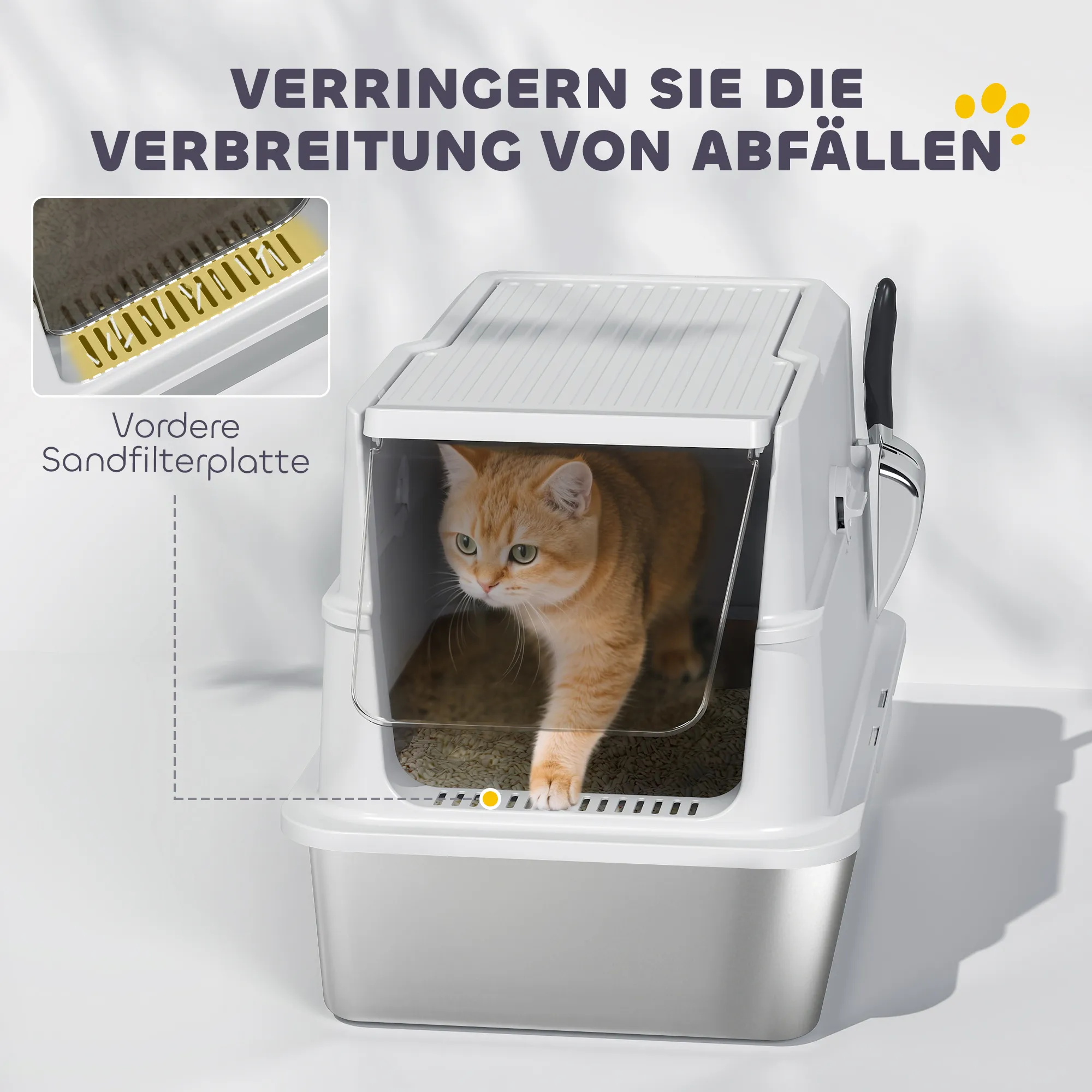 Ben je helemaal klaar met rommel en geurtjes in de kattenbak? De TRUUSK kattenbak van roestvrij staal met deksel is krasbestendig en geurwerend, waardoor de verzorging van je kat eenvoudiger wordt en de omgeving gezonder blijft. Het royale XL-interieur van de kattenbak biedt zelfs grote katten comfort, vermindert schoonmaakwerk en verhoogt het welzijn van je huisdier. Met het klapbare deksel is schoonmaken een fluitje van een cent, ideaal voor drukke huisdiereigenaren die de dagelijkse verzorging willen vereenvoudigen.