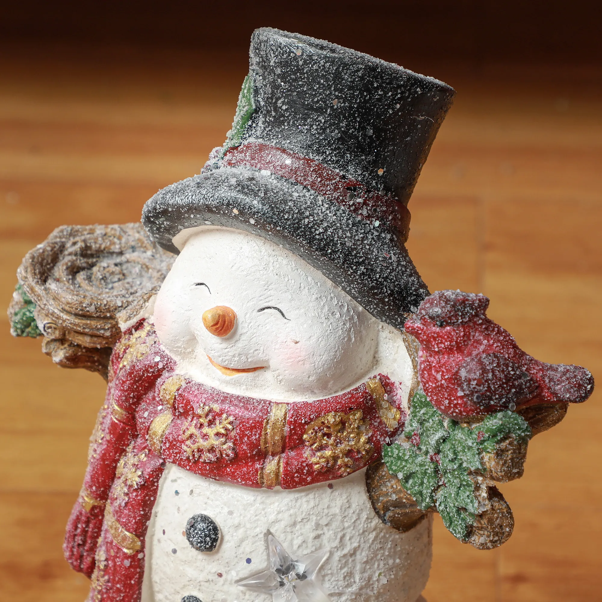• Betoverend design: 38 cm hoge sneeuwman met vogel