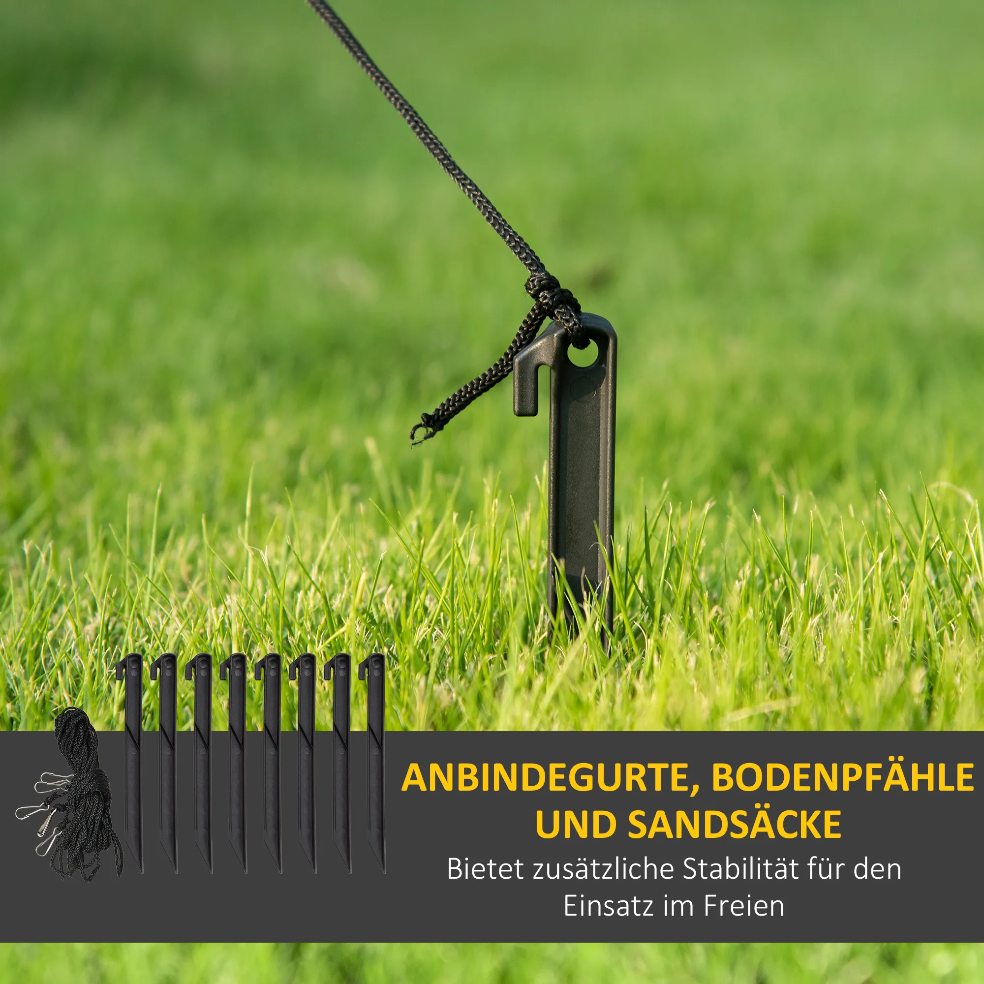 - Stevige bevestiging: inclusief grondpennen, scheerlijnen en zandzakken voor stabiliteit