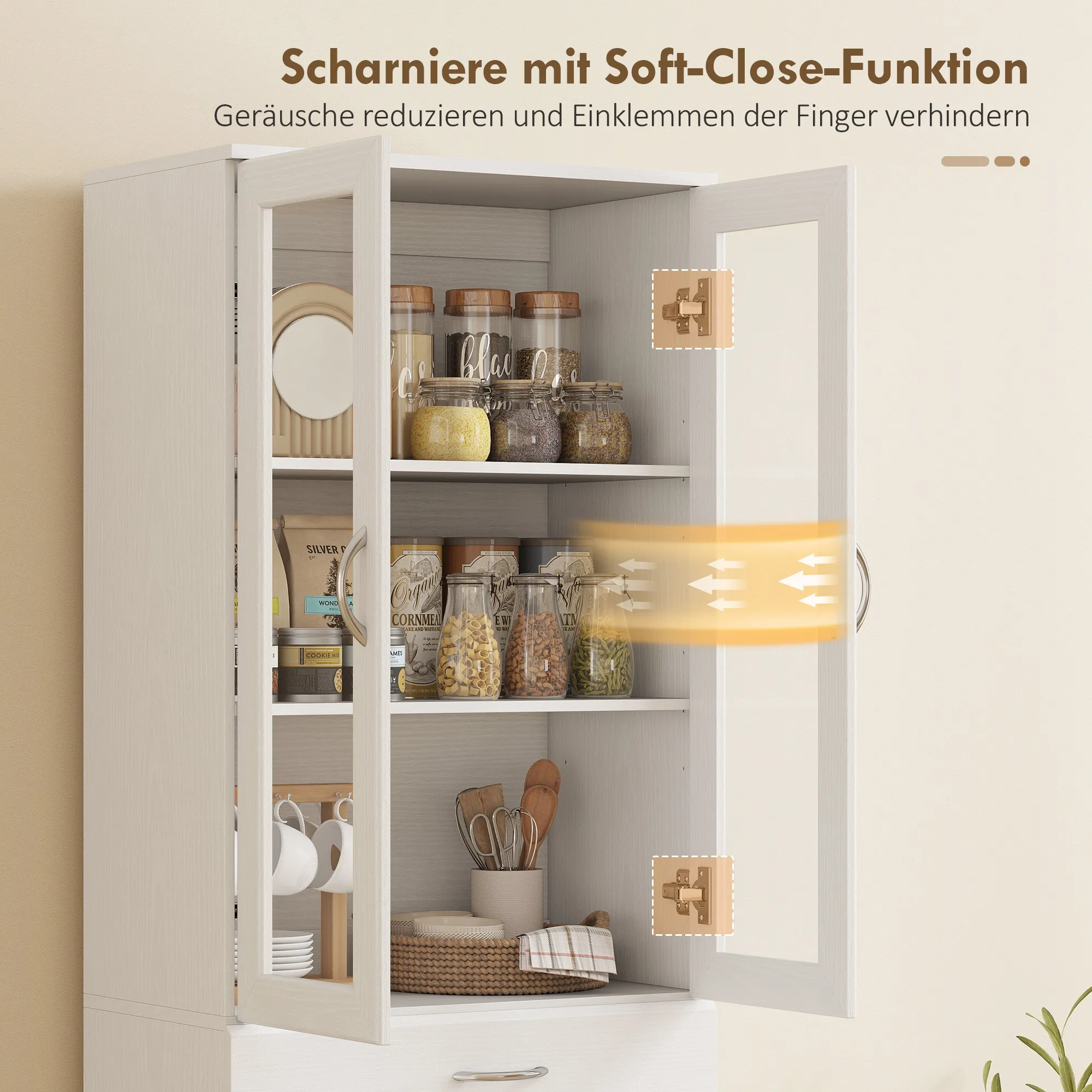 - Zachte sluiting: soft-close scharnieren voor geruisloze deurbediening