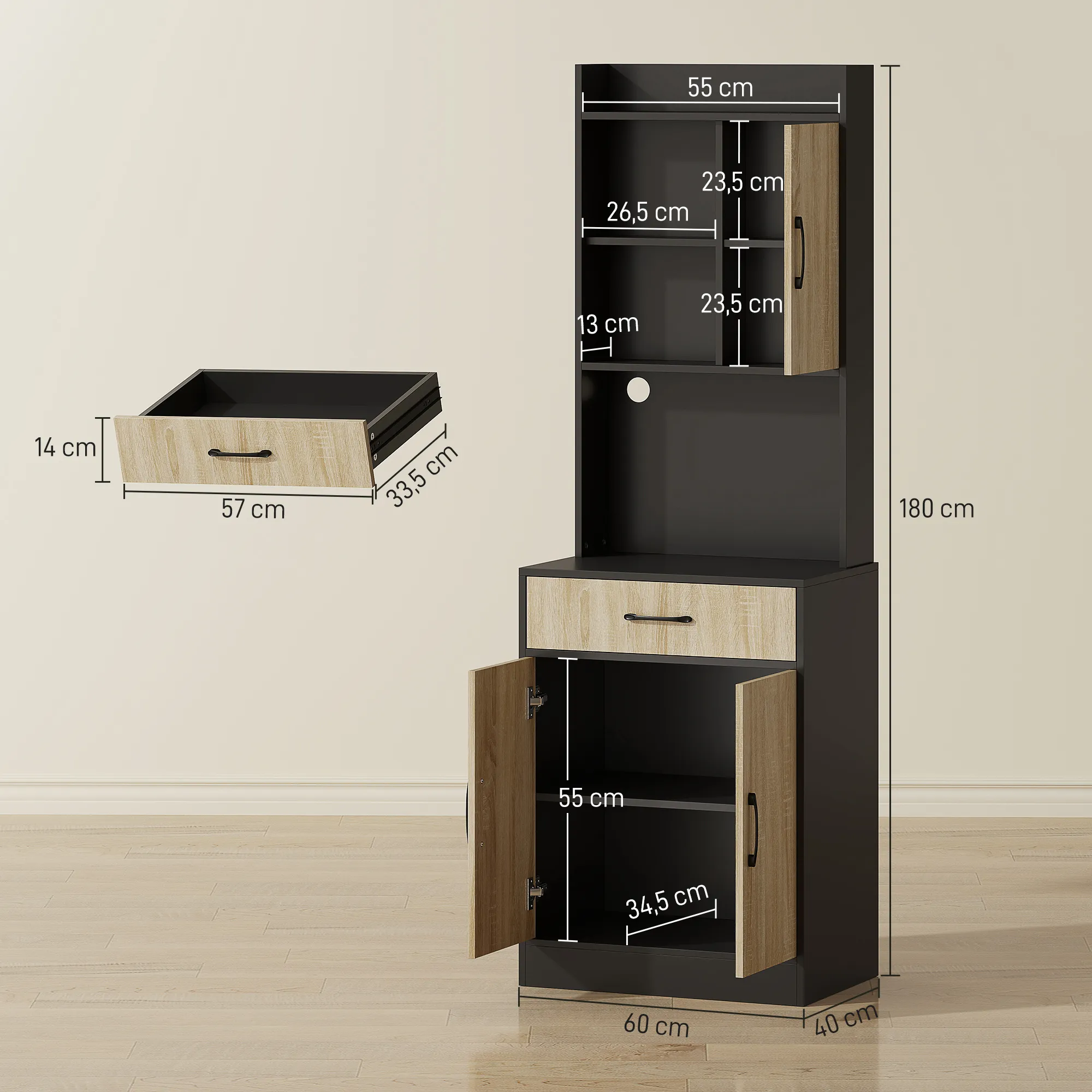 - Stijlvol design: houten en zwarte afwerking passen moeiteloos bij moderne wooninrichtingen