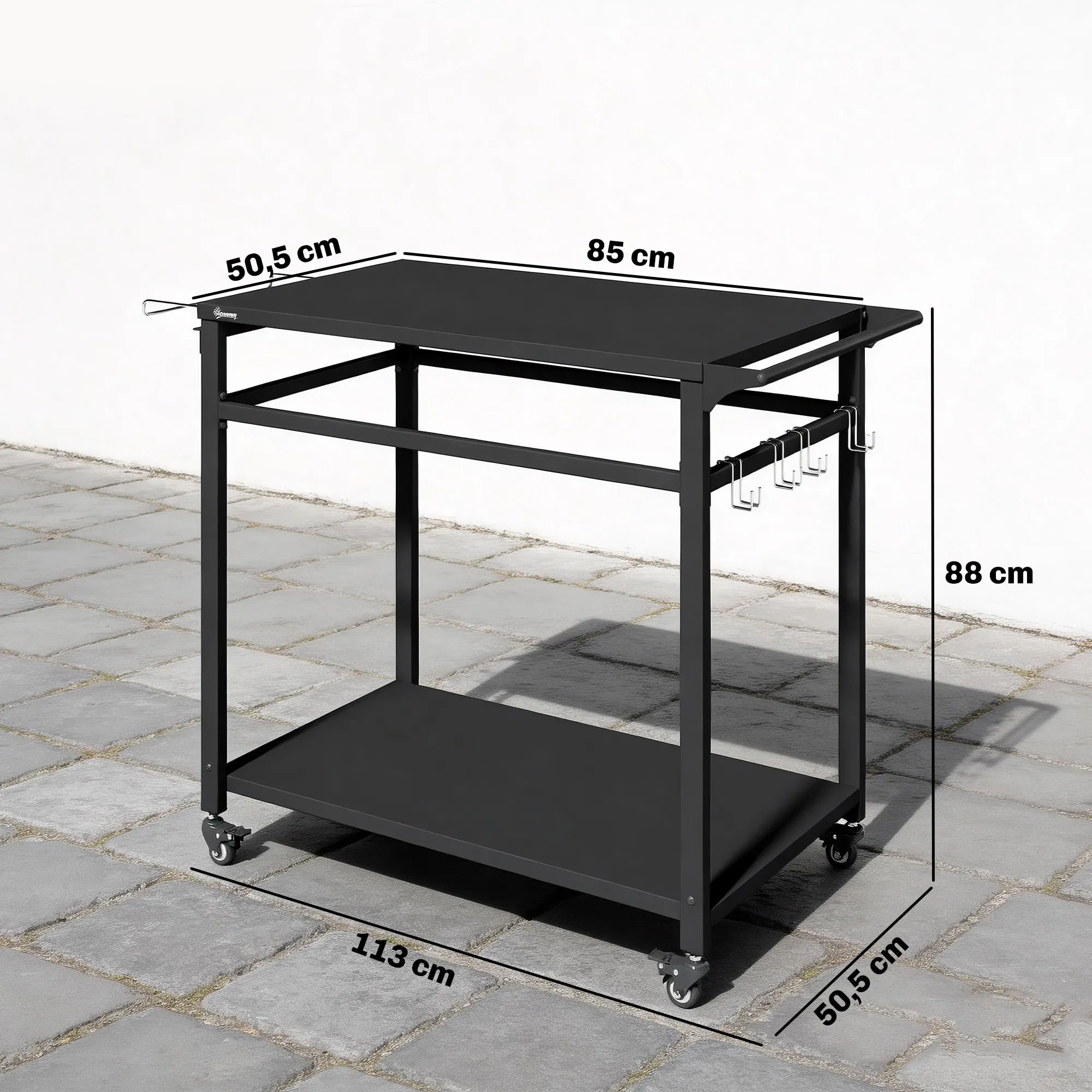 Maak van jouw barbecue-avonden een georganiseerde en stressvrije ervaring met de BBQ Master barbecuewagen. Dankzij de twee open planken heb je al je benodigdheden binnen handbereik en behoud je het overzicht tijdens het grillen in de tuin. Deze mobiele en stabiele grilltafel biedt een praktische en ruime werkplek voor een vlekkeloze kookervaring in de buitenlucht.