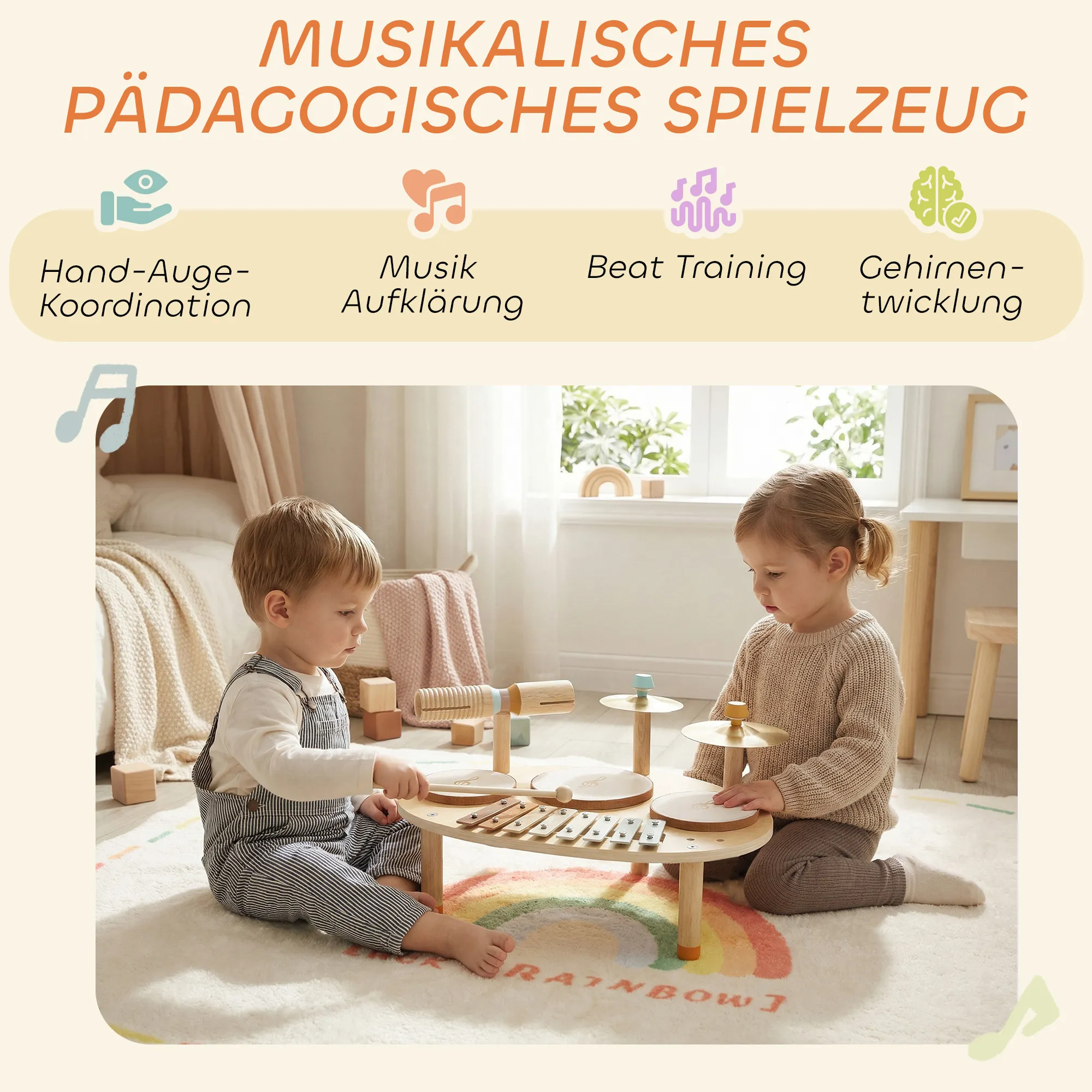 Ontdek de muzikale talenten van je baby met de 4-in-1 [BRAND NAME] kindermuziekinstrumentenset. Deze set bevat drie trommels, een xylofoon, bekkens, een dubbelklankblok en drumstokken om het ritme, de melodieën, de creativiteit, de perceptie en de coördinatie van je kleintje te stimuleren. Veilig, vermakelijk en met gladde randen, dit is het perfecte cadeau voor jonge muzikanten.