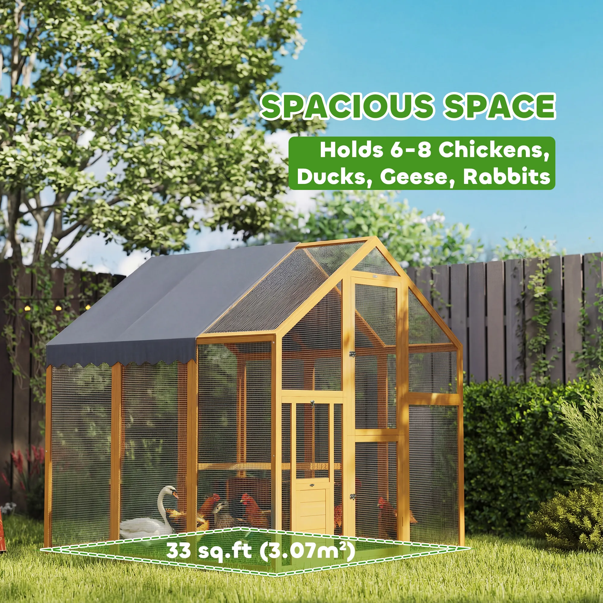 Kippenhok 3,07㎡ Met Houten Vrije Uitloop, Waterdicht Doek, Veiligheidsslot, Geschikt Voor 6-8 Kippen 1,7 X 1,8 X 1,8 M