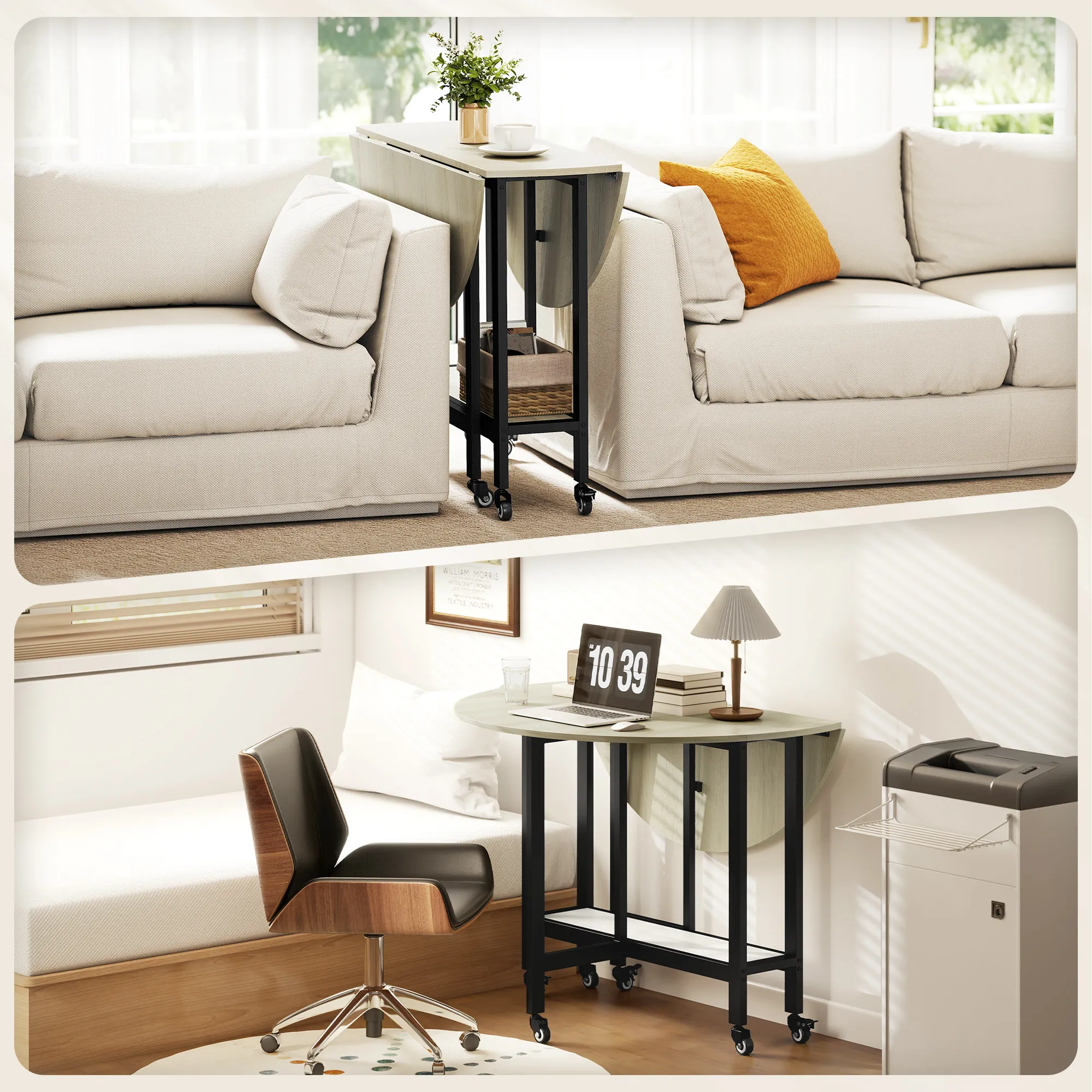 Transformeer je eetruimte met de [BRAND NAME] eettafel! Dit slimme opvouwbare ontwerp biedt plaats aan 2 of 4 personen en is ideaal voor kleine appartementen of multifunctionele ruimtes. Dankzij de soepel lopende wielen kan de eettafel moeiteloos worden verplaatst en indien nodig veilig worden vastgezet. Met een handig opbergvak is het een stijlvolle, ruimtebesparende oplossing voor maaltijden, werk of hobby’s – alles gecombineerd in een compact ontwerp.
