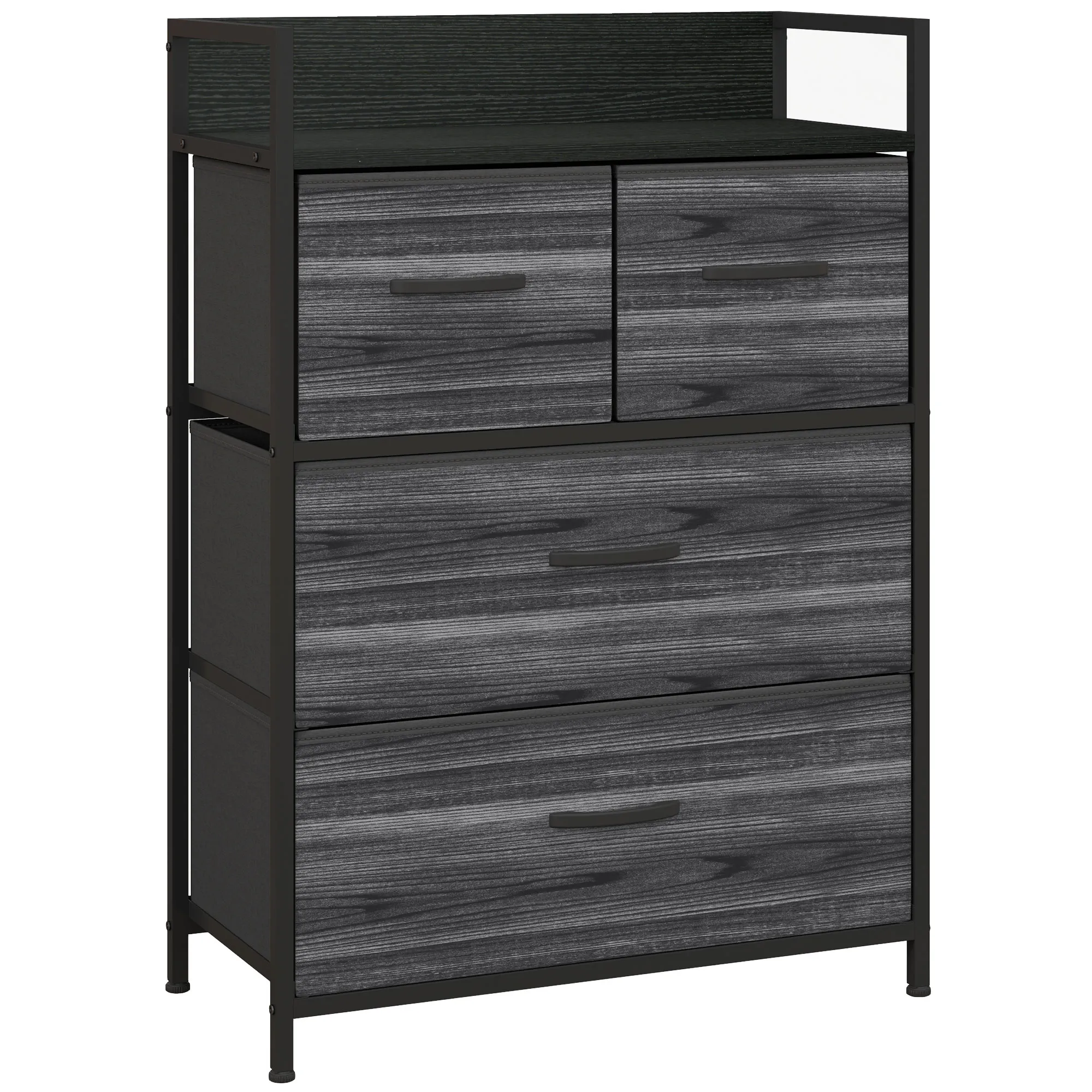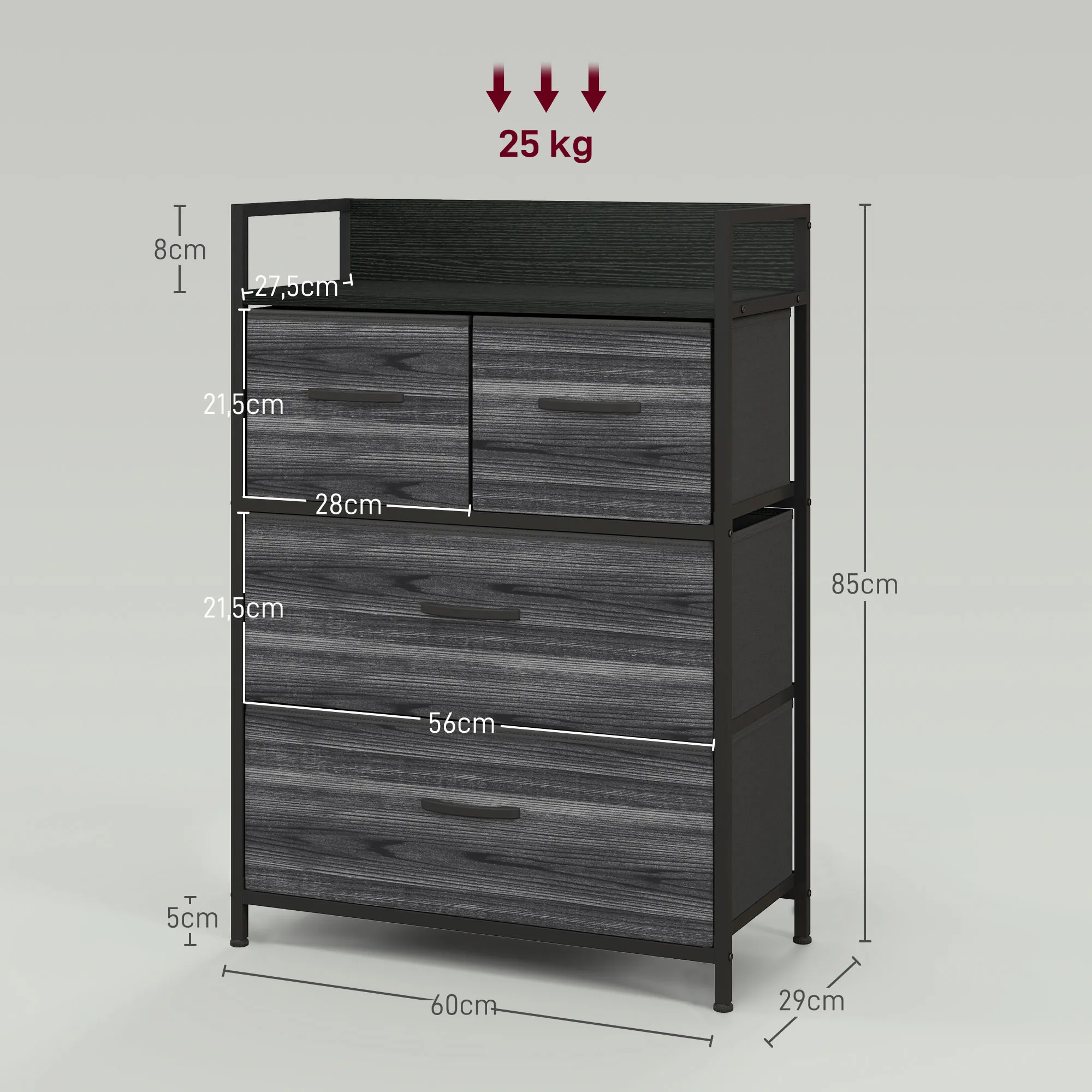 Kommode, Sideboard, 4 Stofflades, Industrieel Ontwerp, 60x29x85cm, Zwart