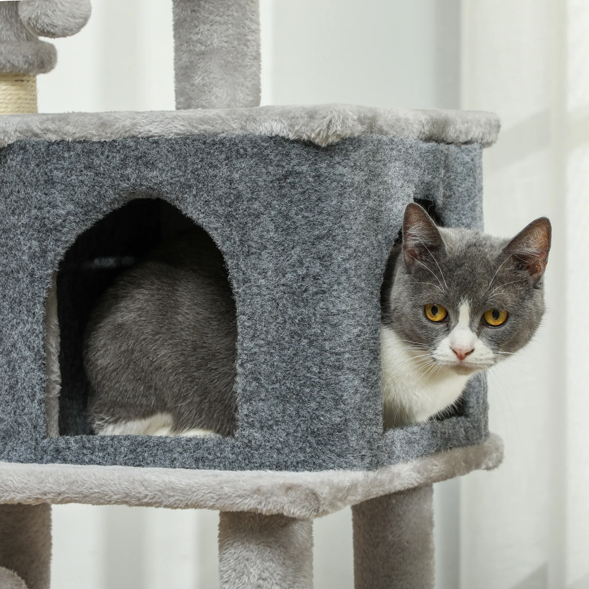 Verwen je kat met de [BRAND NAME] kattenboom! Dit speelcentrum biedt een knus kattenbed, een huis en meerdere krabpalen van stevig sisal, perfect voor klauwverzorging. De zachte pluche bekleding beschermt je meubels tegen krassen en zorgt voor comfort. Geschikt voor katten tot 5 kg.