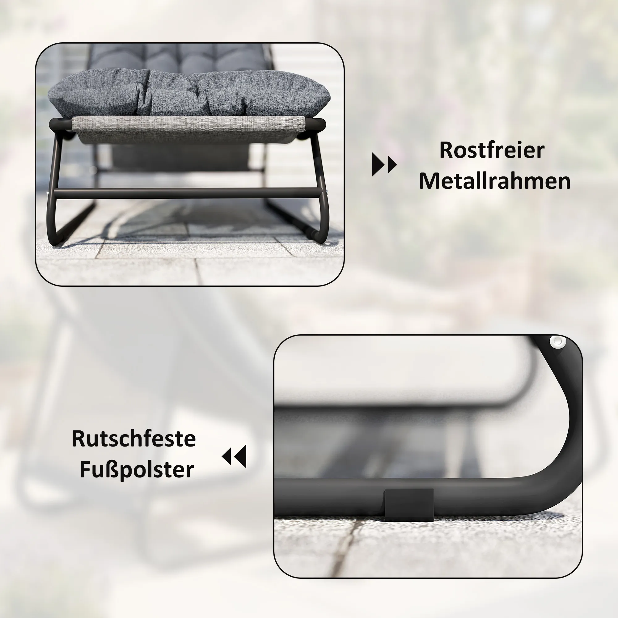 • Flexibele beenondersteuning: tweedelige set met balkonstoel en aparte voetenbank