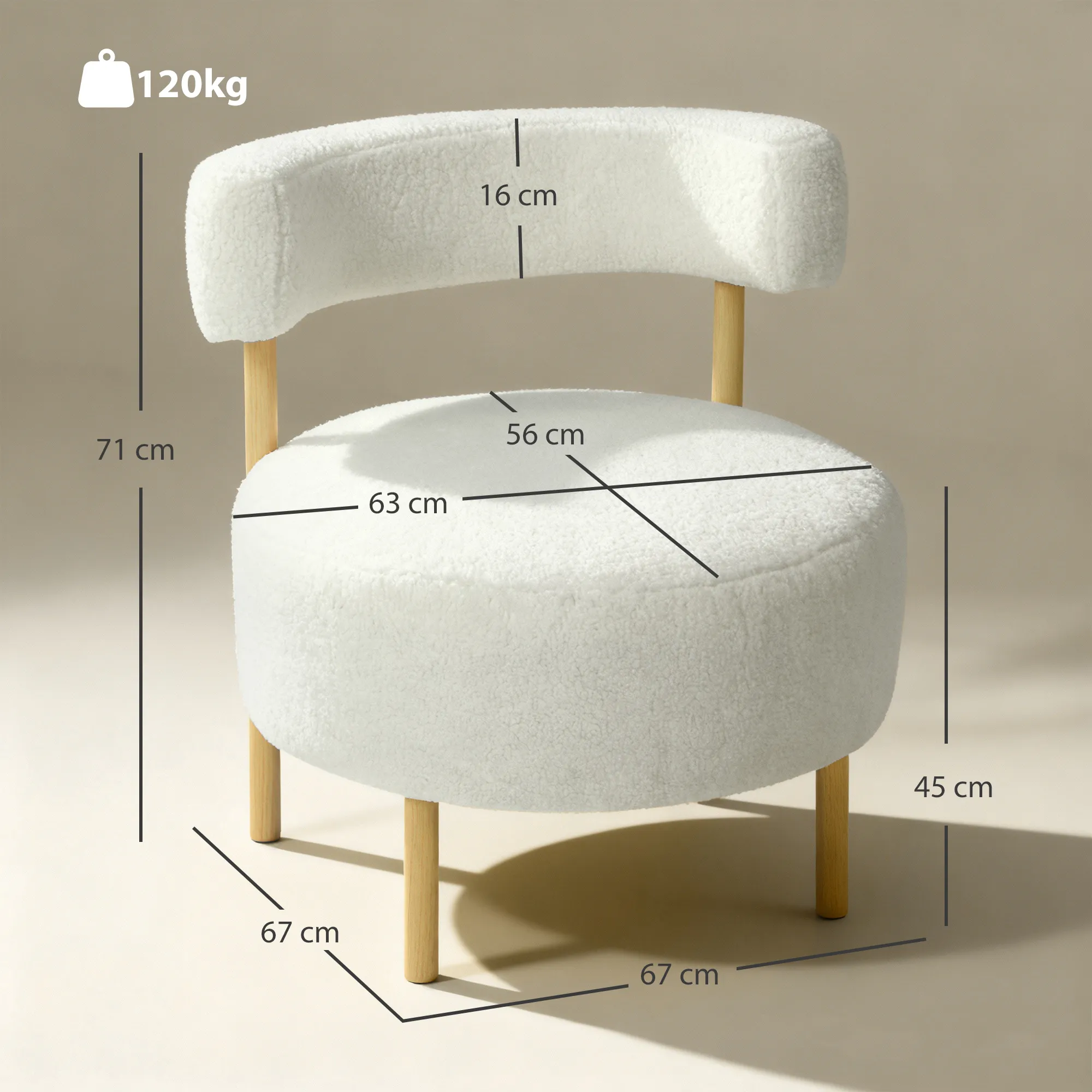 Ontdek de [BRAND NAME] fauteuil, jouw perfecte toevluchtsoord na een drukke dag. De zacht gebogen rugleuning omhult je als een warme omhelzing. Een royale zitting, opgevuld met dik schuim en bekleed met zacht Sherpa-fleece, biedt onweerstaanbaar comfort. De metalen poten in houtlook en de zitbasis van eucalyptushout garanderen robuuste stabiliteit. Hoewel compact, biedt deze bouclé-loungefauteuil overal ruimte – ideaal voor leeshoeken tot slaapkamers.
