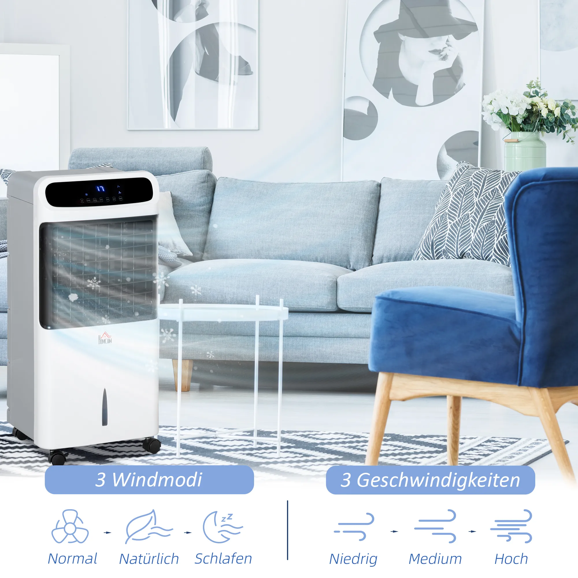 Blijf deze zomer heerlijk koel met de mobiele luchtkoeler van [BRAND NAME]. Met de ijsboxen wordt de lucht nog verfrissender en aangenamer. Kies uit drie verschillende snelheden en modi, waaronder normaal, natuurlijk en slaapmodus. De handige timerfunctie maakt deze luchtkoeler perfect voor gebruik ’s nachts. De ventilator met koeling zwenkt zijwaarts om grotere ruimtes te koelen. Haal vandaag nog een draagbare luchtkoeler in huis en geniet van de verkoeling!