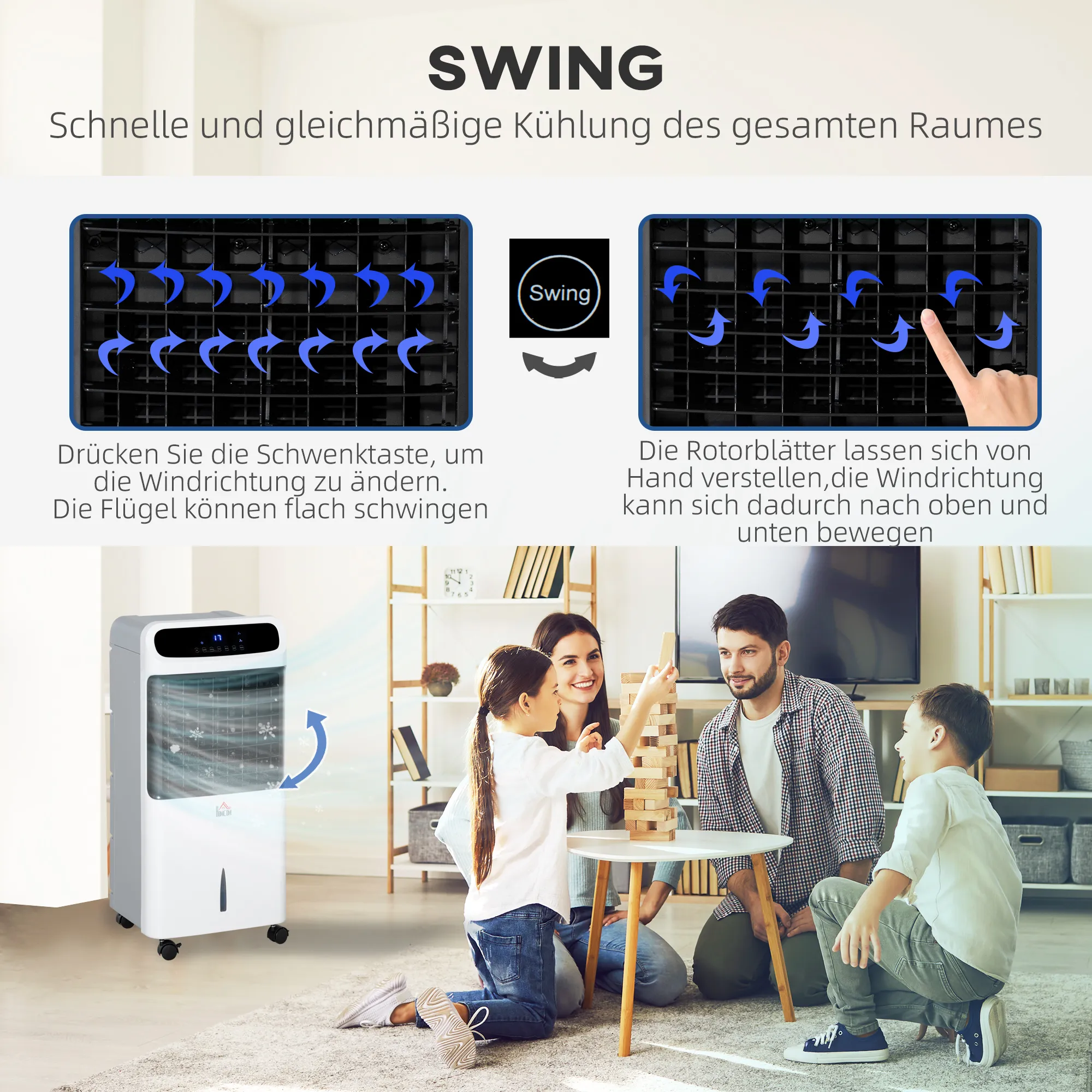 - Veelzijdigheid: ventileert, koelt met ijs, bevochtigt en heeft een anionfunctie