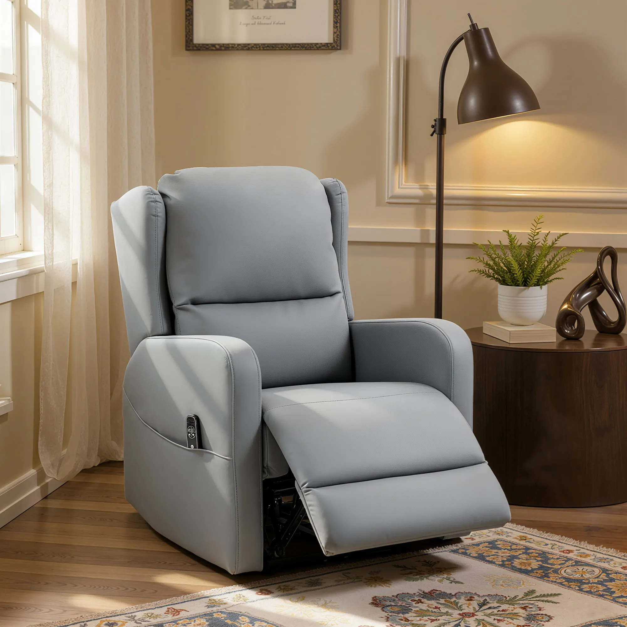 Voel je je na een vermoeiende dag gespannen in je schouders, taille en rug? De TRUUSK Massagesessel helpt met speciale knedende technieken om spierspanningen te verlichten. Zak weg in het zachte leer (echt en kunstleer) van deze elektrische relaxfauteuil, stel hem tot 135 graden in en ervaar hoe de op maat gemaakte massageprogramma’s je spanning doen verminderen en je welzijn verbeteren.