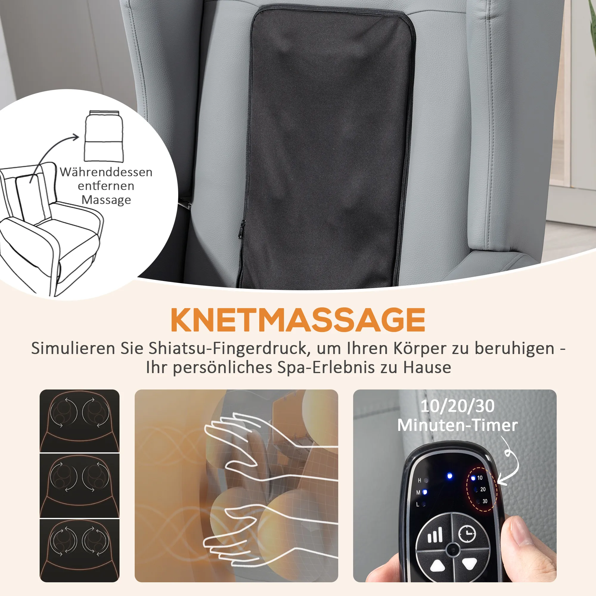 - Gerichte massage: knedende massagefuncties voor schouders, lendenwervelkolom of hele rug