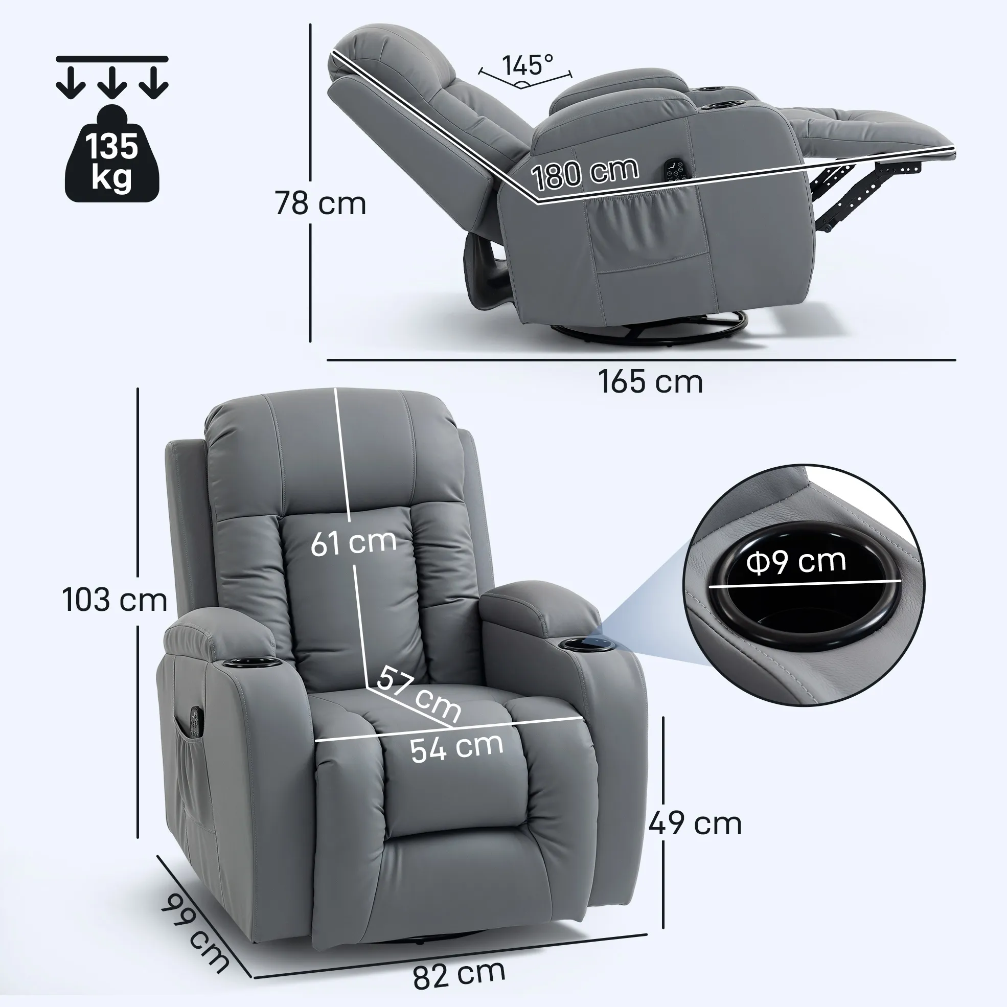 - Handige extra’s: lendenverwarming, zijzakken voor de afstandsbediening en drankhouders