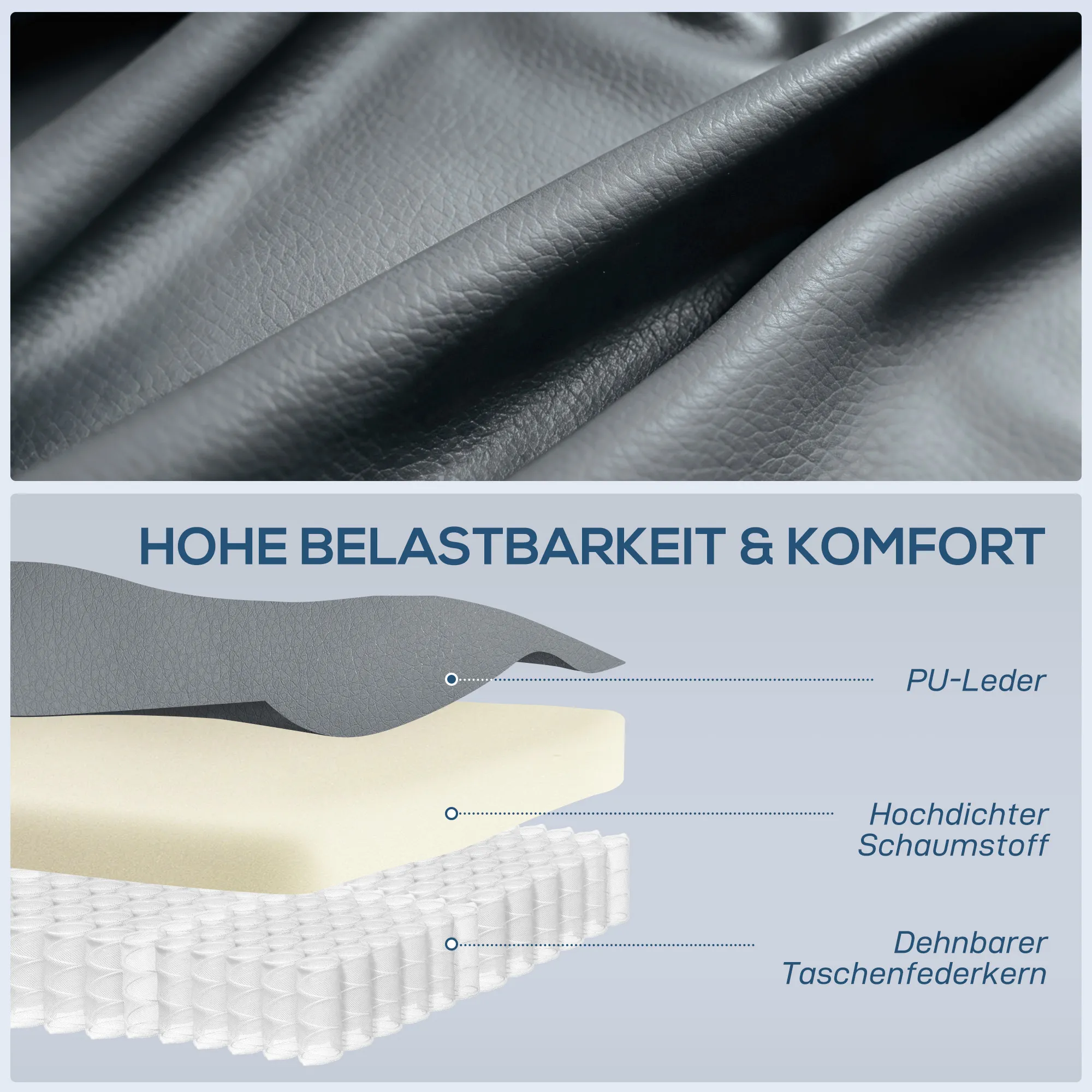 - Materiaal: Kunstleer, schuim, staal, plastic