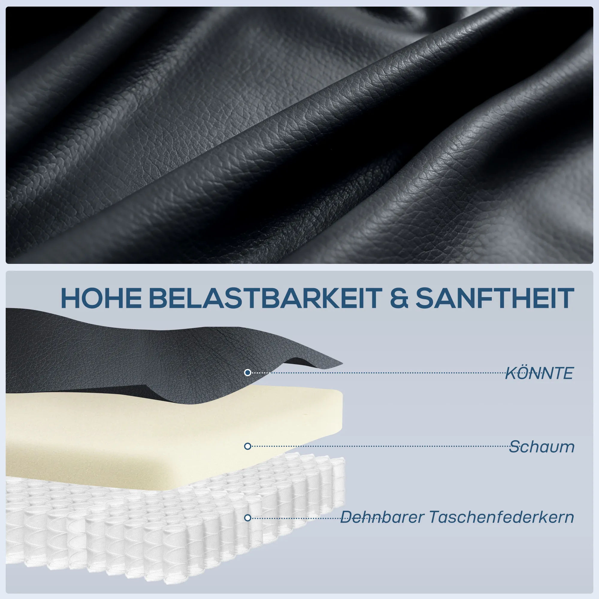- Materiaal: Kunstleer, katoen, schuim, staal, hout