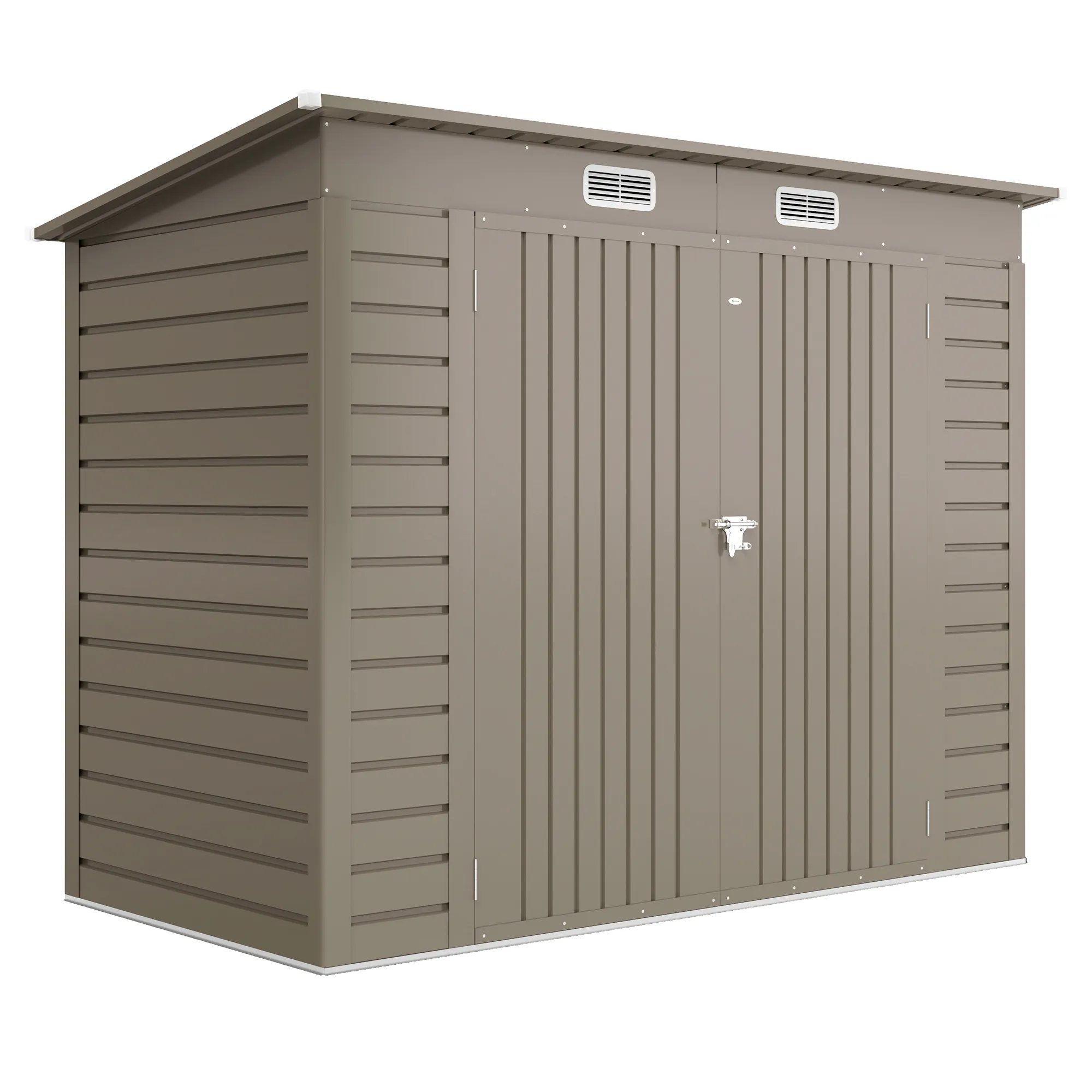 Metalen Tuinschuur, Gereedschapsschuur, Dubbele Deur, 249 X 121 X 166/183cm, Lichtgrijs
