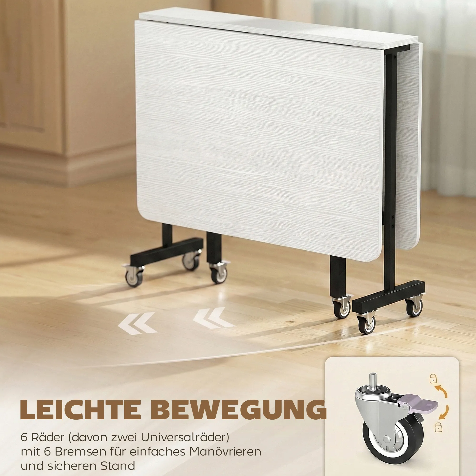 Mobiele Klaptafel Met 6 Wielen En Remmen, Opvouwbare Keukeneettafel Voor Kleine Ruimtes, Wit