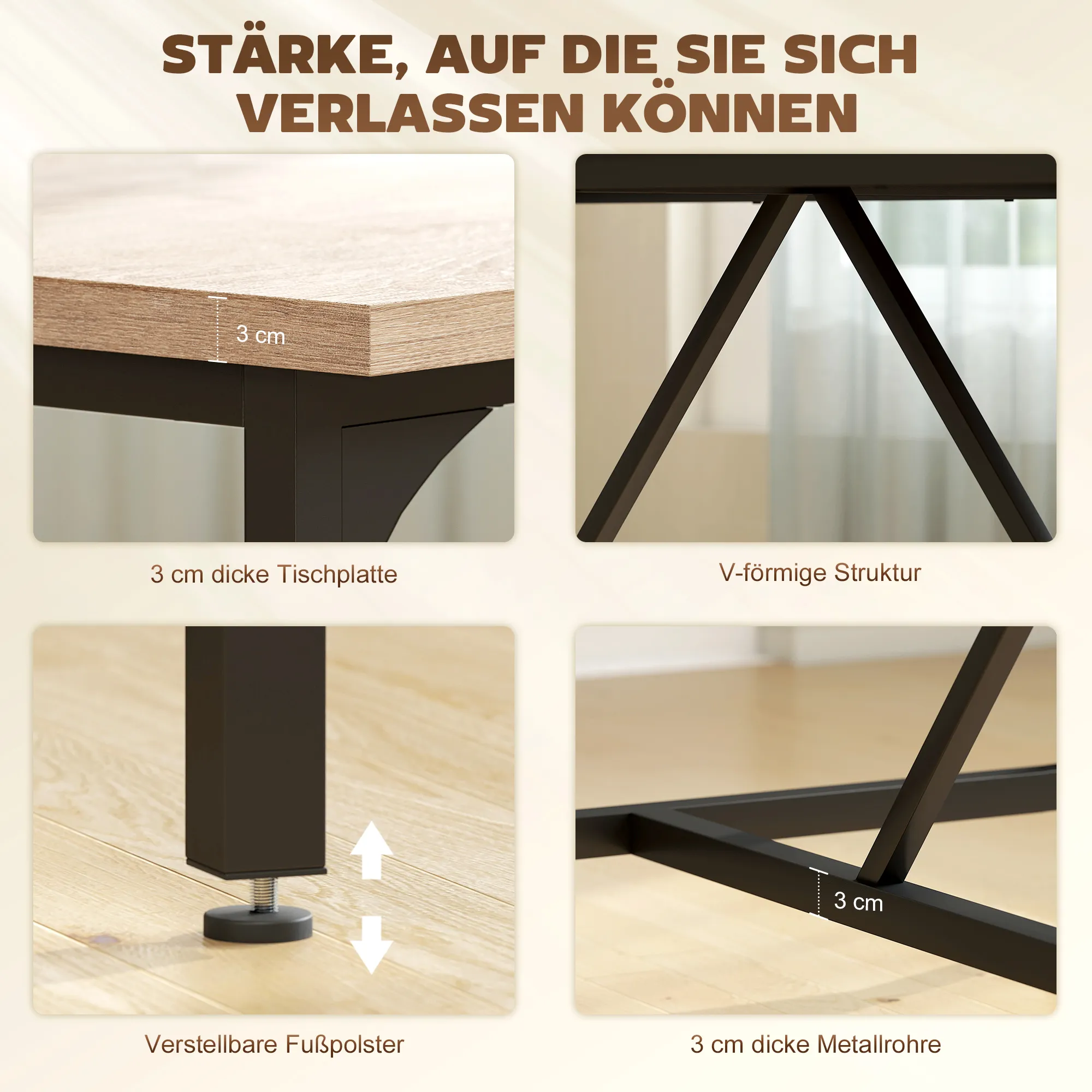 • Natuurlijke stijl: tafelblad in houtlook en zwarte stalen poten voor een trendy uitstraling