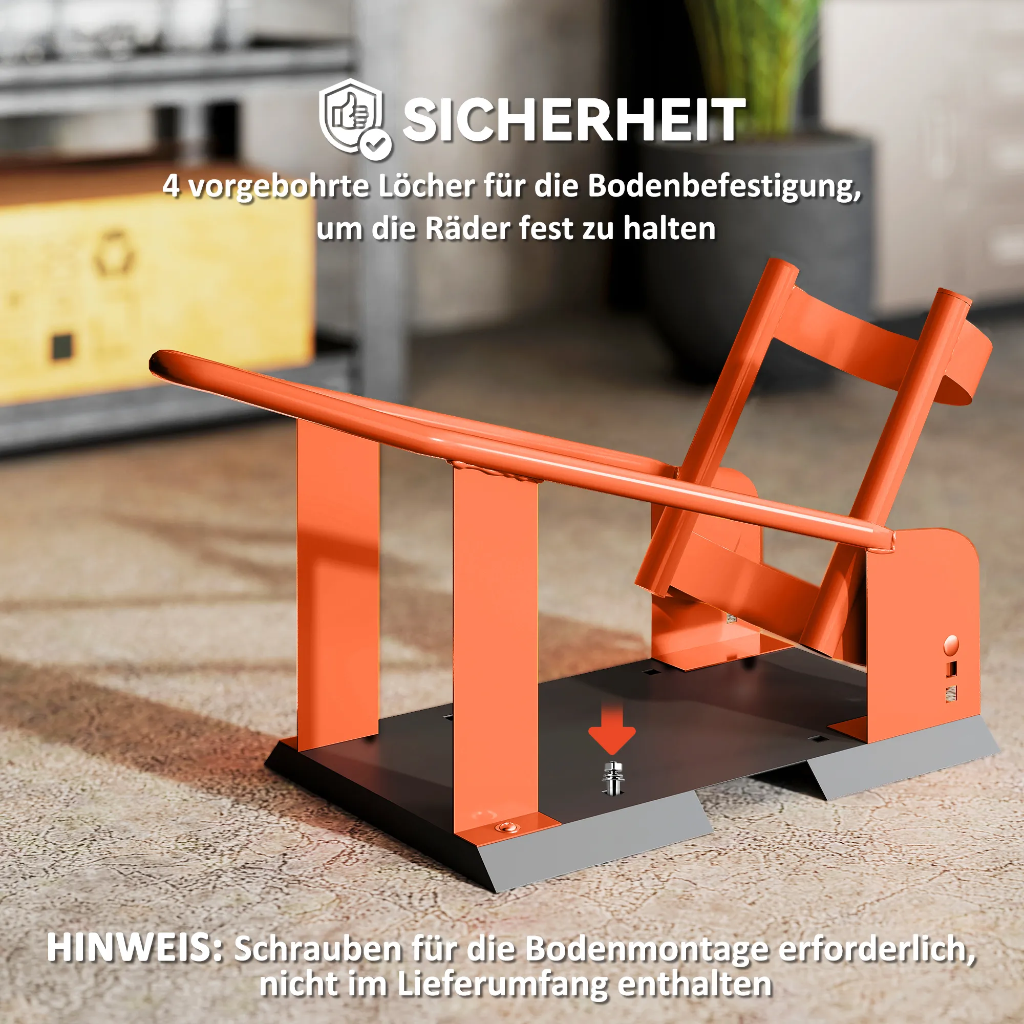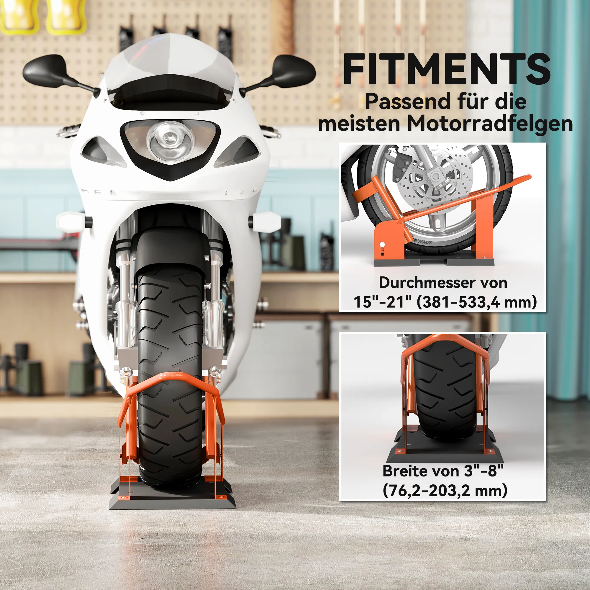 Wil je je motorfiets veilig stallen? Kies dan voor de [BRAND NAME] motorfietsstandaard! Deze standaard is ontworpen om motorbanden met een breedte van 76,2-203,2 mm en een diameter van 381-533,4 mm veilig vast te houden. Je kunt de chock eenvoudig op drie verschillende hoogtes instellen, waardoor hij perfect past bij verschillende motorfietsen. De robuuste stalen constructie kan tot 816,5 kg dragen en maakt vloermontage eenvoudig, zodat stabiliteit gegarandeerd is.