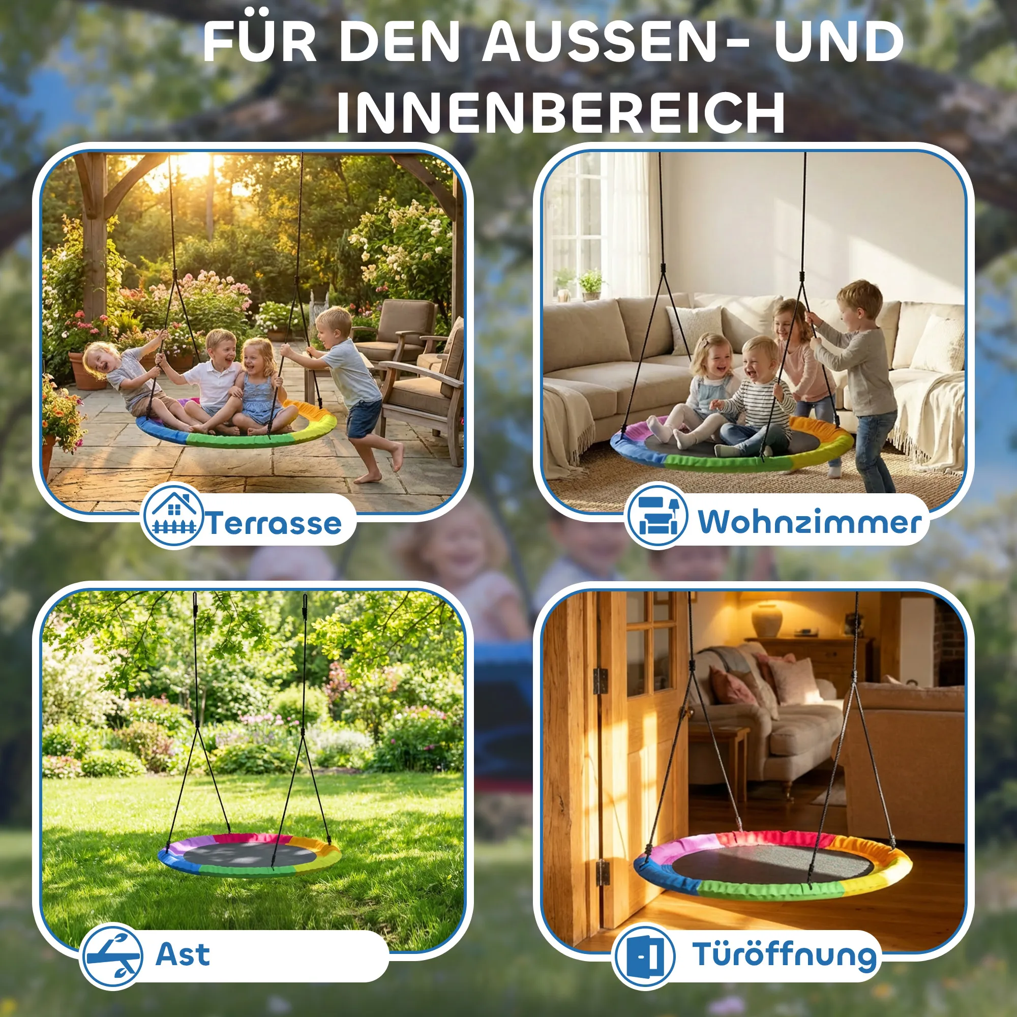 Nestschommel In Hoogte Verstelbaar, Hangschommel Ø 120 Cm Tot 300kg Voor Kinderen Van 3-8 Jaar, 120 X 120 X 180 Cm Meerkleurig
