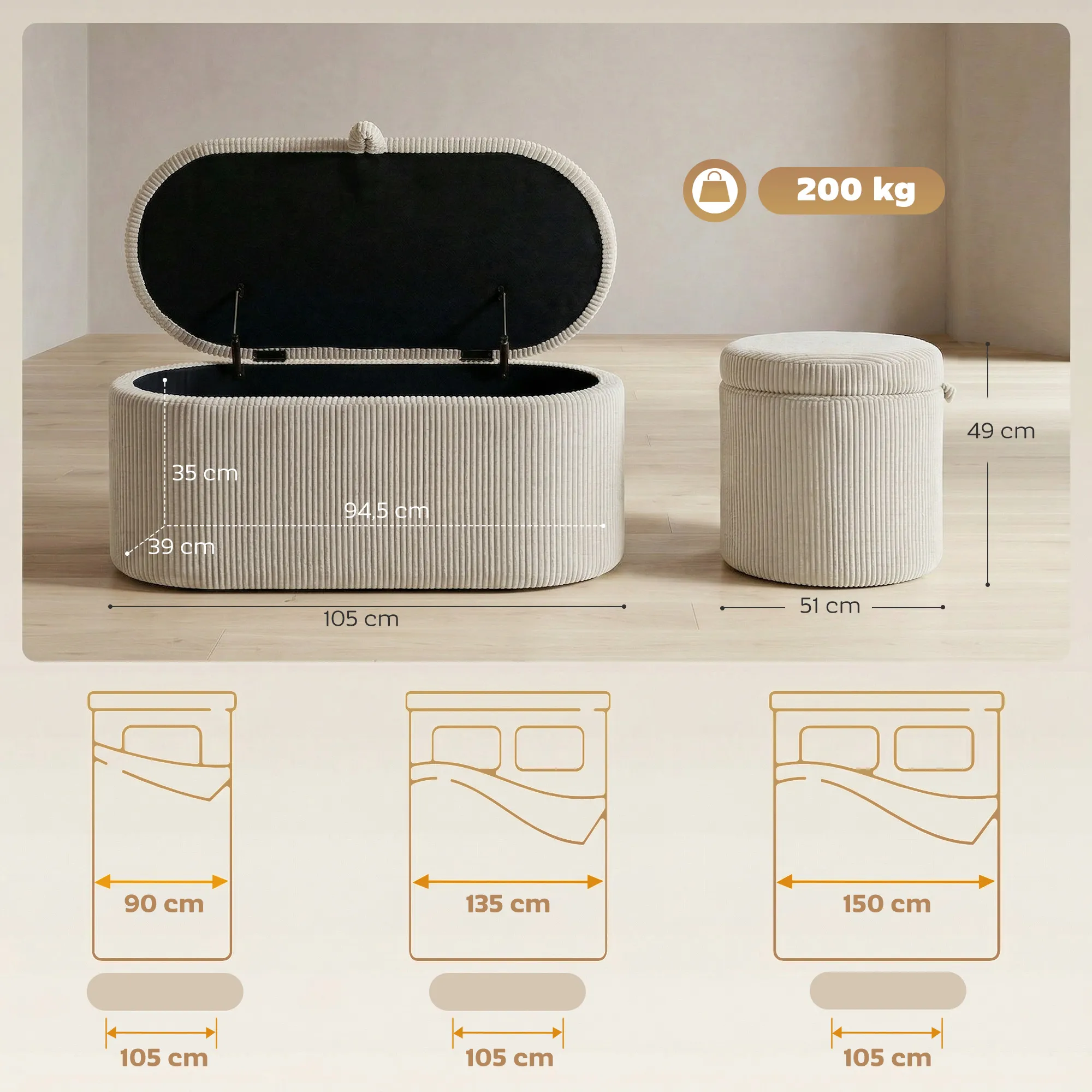 - Stijlvol en functioneel: Gestoffeerd met zachte, duurzame corduroy stof en een groot verborgen opbergvak