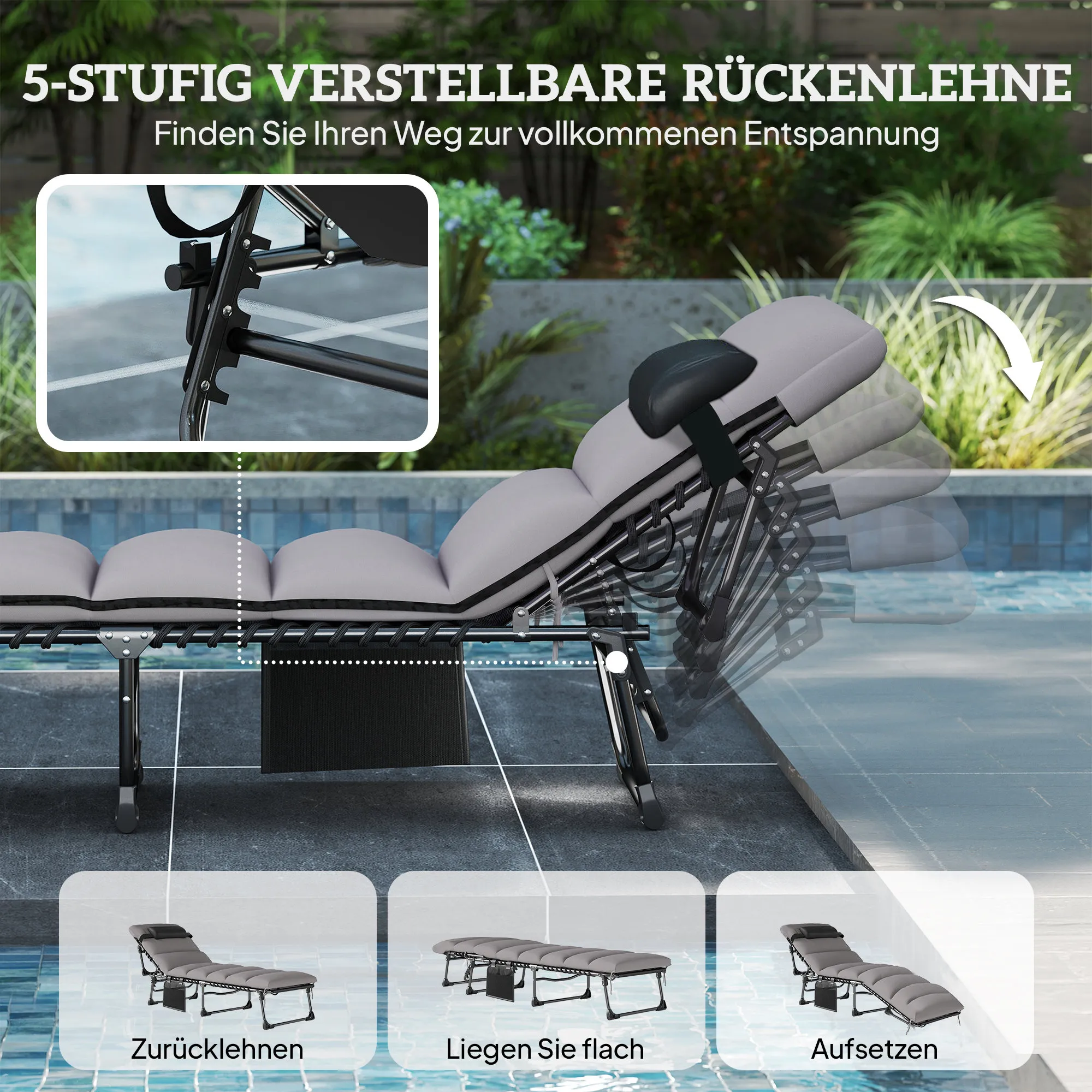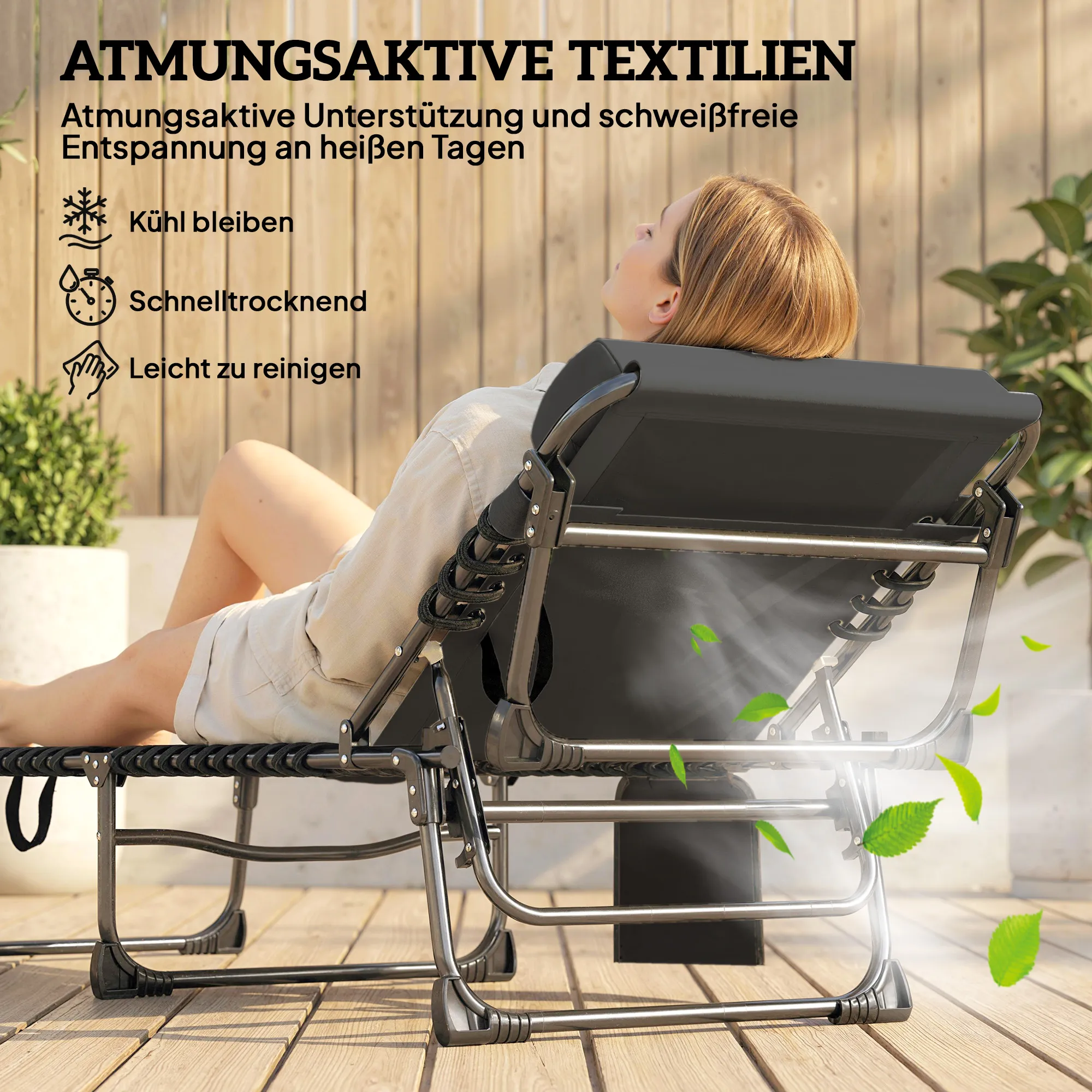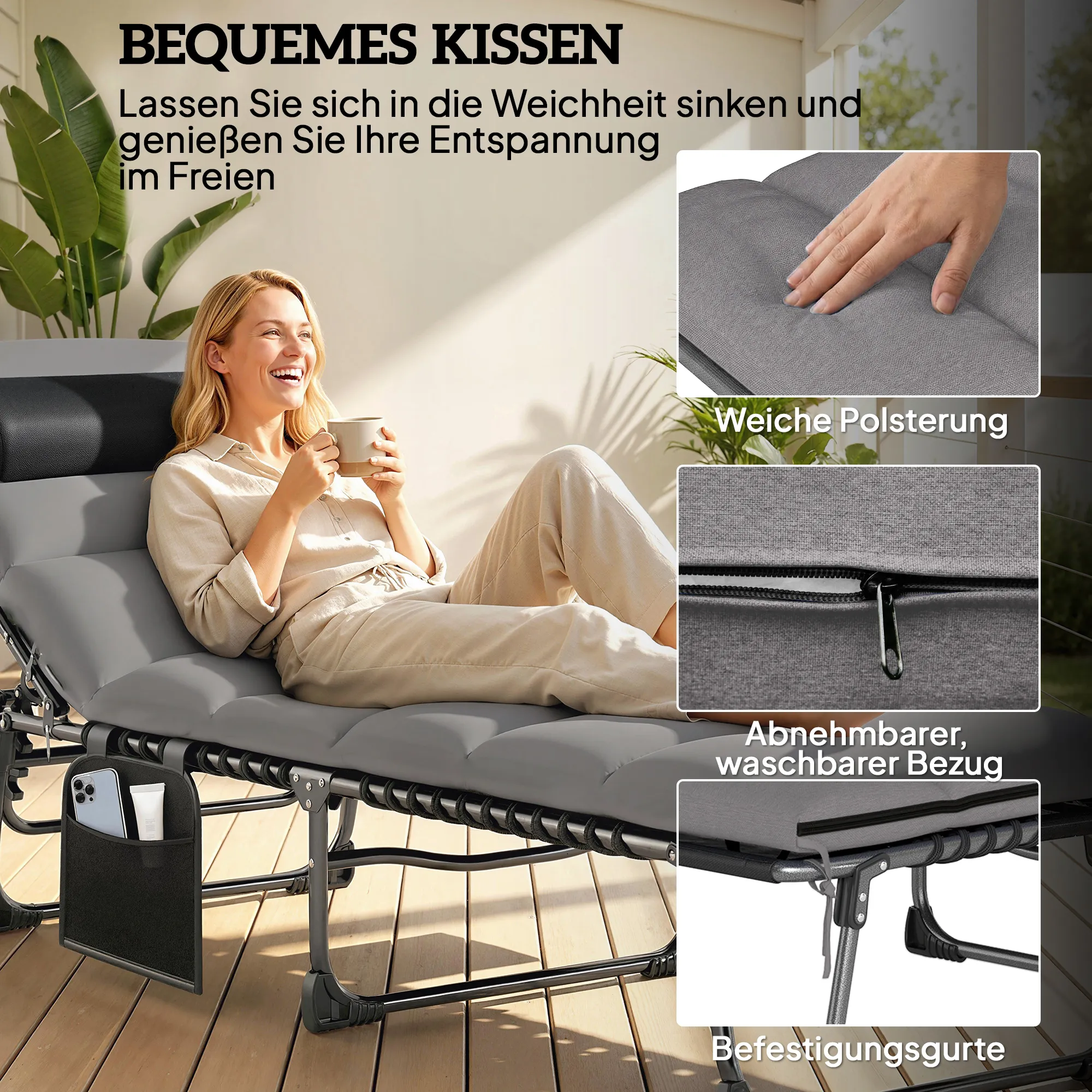 - Optimaal comfort: 5-traps verstelbare rugleuning en afneembaar kussen voor comfort in elk seizoen