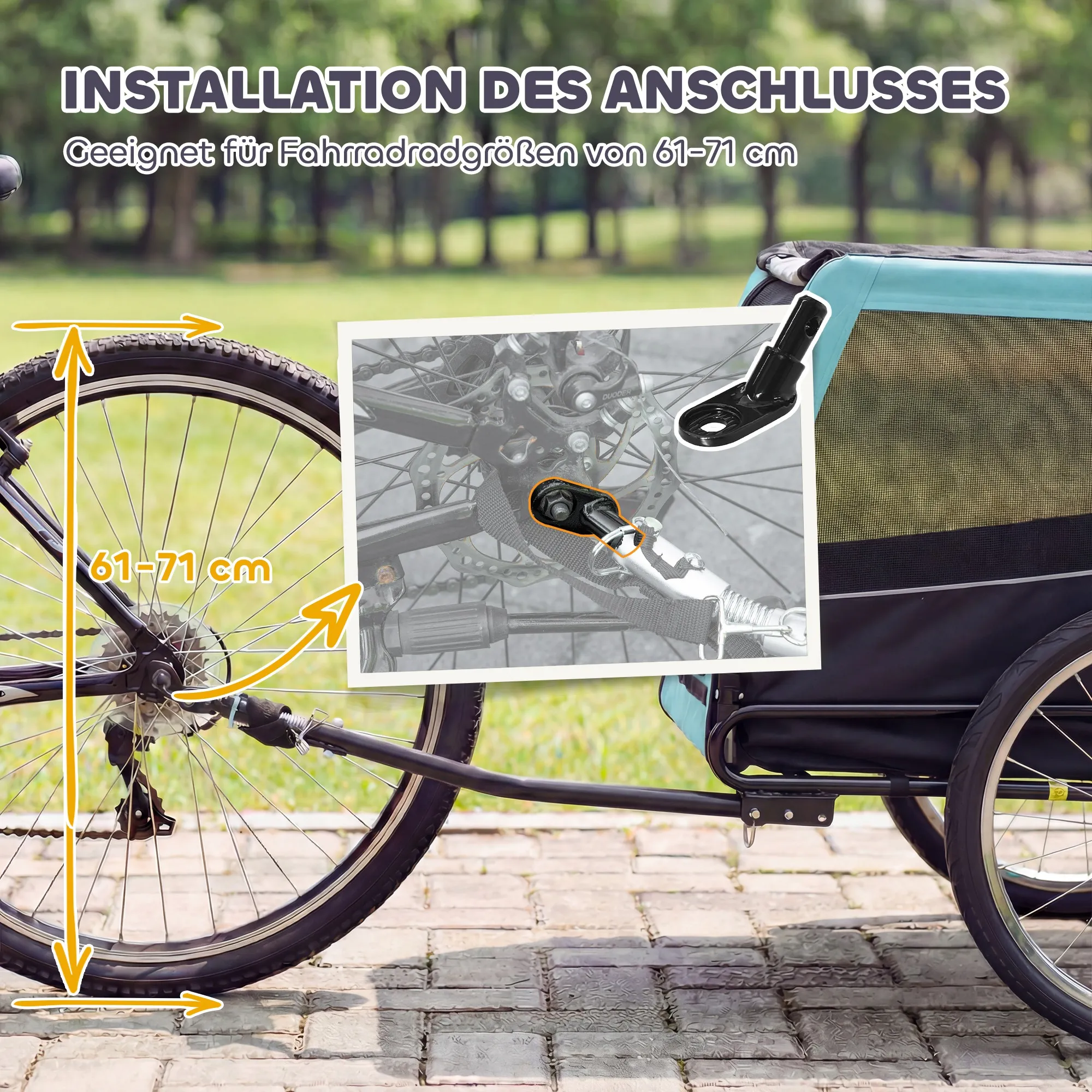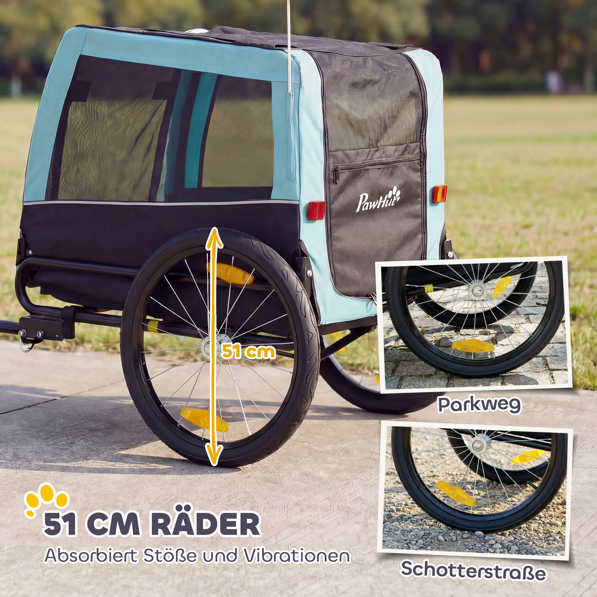 Laat je harige vriend niet achter tijdens avonturen – of het nu gaat om een korte rit naar het park of een weekendje weg: de [BRAND NAME] hondenfietskar zorgt ervoor dat je huisdier veilig en comfortabel mee kan. De grote wielen absorberen oneffenheden, terwijl de ingebouwde steunpoot zorgt voor stabiliteit bij het laden. Met ritssluitingen en mesh-ramen voor frisse lucht en bescherming, en extra veiligheidsvoorzieningen zoals reflecterende strepen, een rode veiligheidsvlag en een binnenriem, maak je elke rit zorgeloos en veilig.