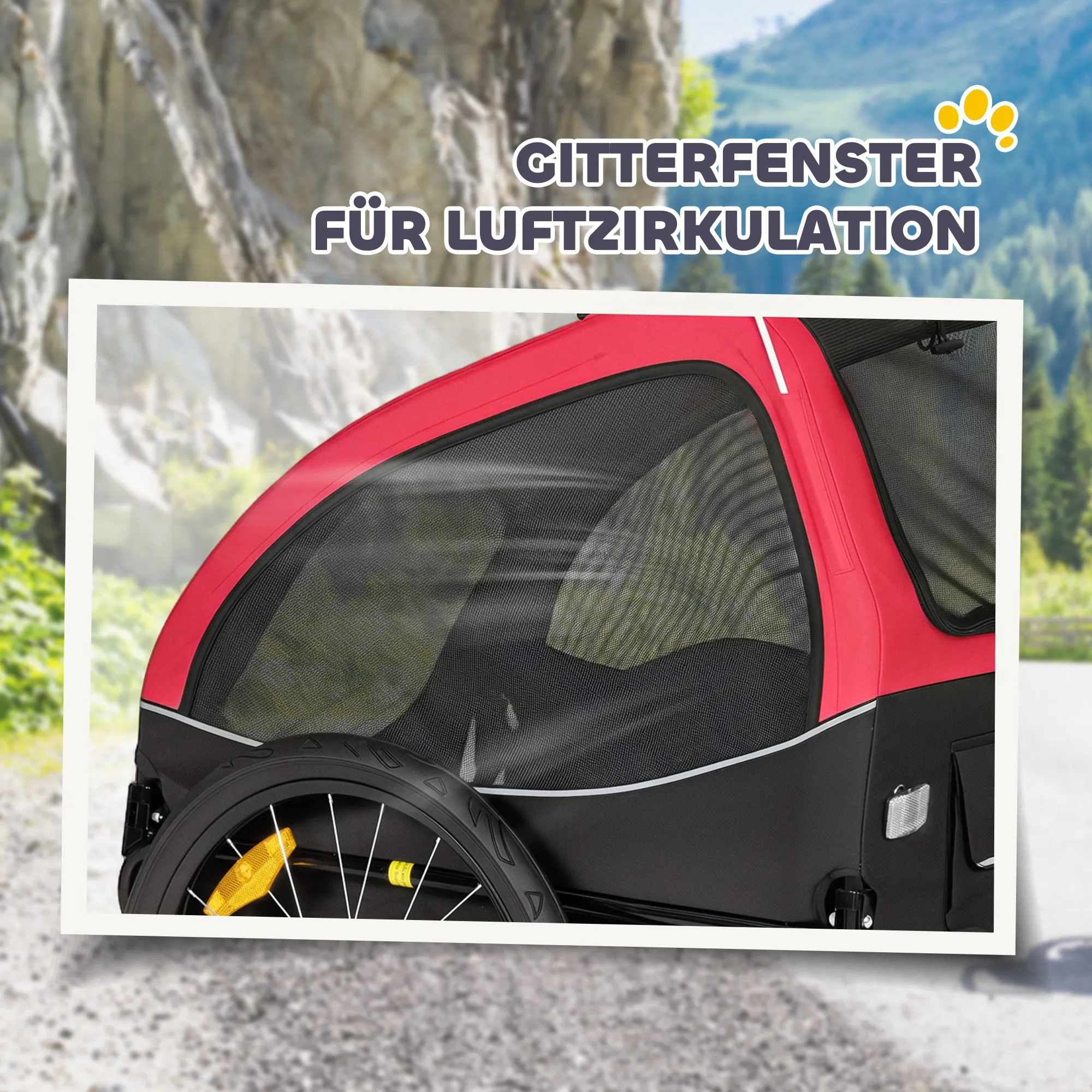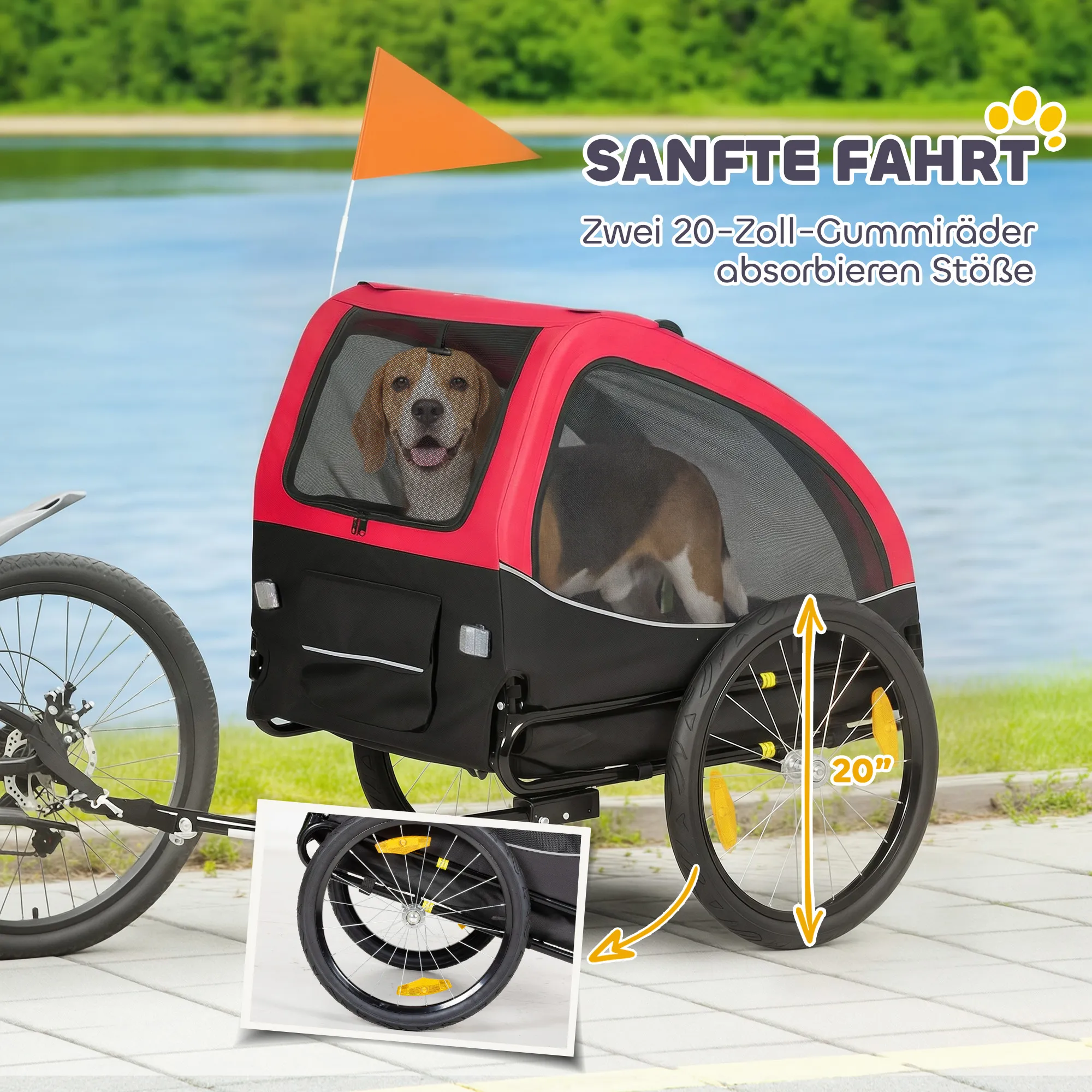 - Veiligheid voorop: voorzien van reflectoren, een vlag en een lijn voor hoge zichtbaarheid