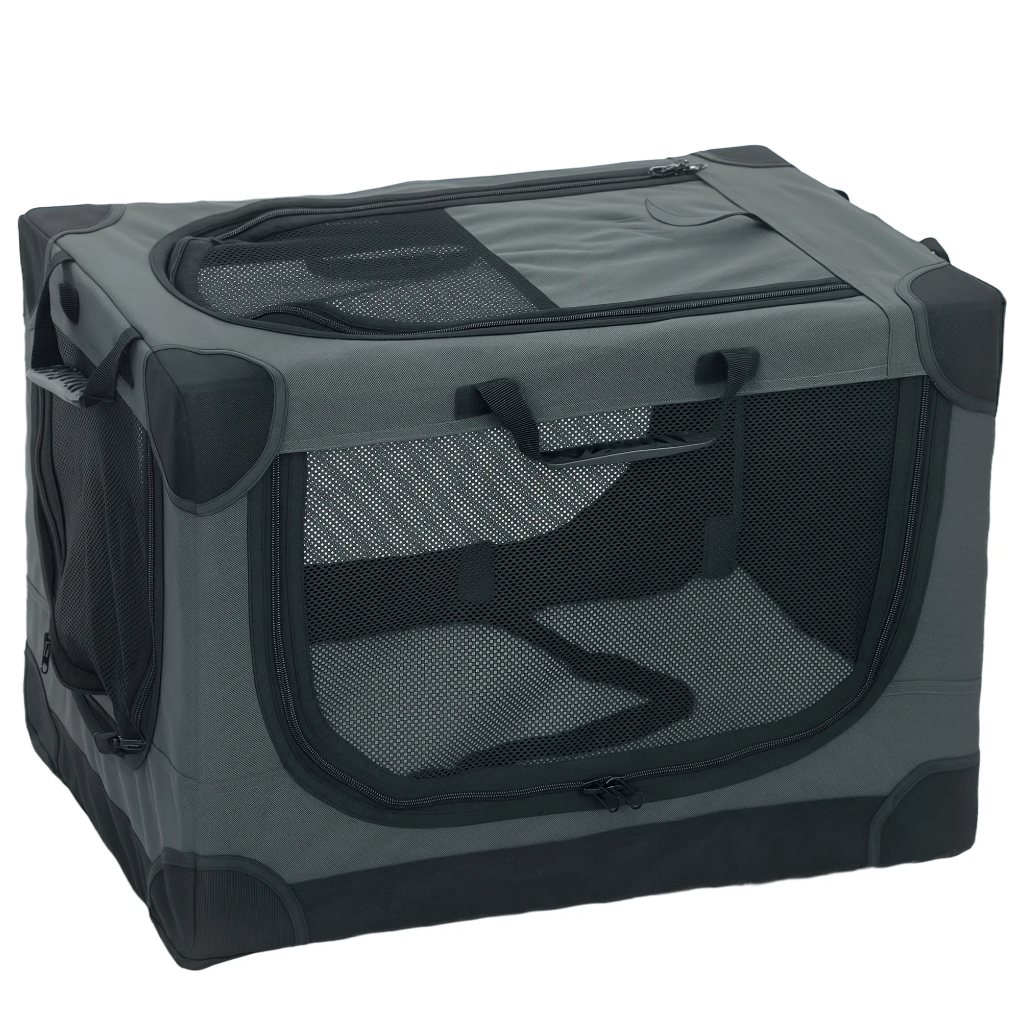 Met de zachte opvouwbare hondentransportbox van [BRAND NAME] hoef je je geen zorgen meer te maken over ontsnappende en gestreste huisdieren tijdens reizen of onverwacht bezoek. Dankzij het 8-stangen vouwframe zet je de transportbox in enkele minuten op en berg je hem compact op wanneer je hem niet gebruikt. De stevige 600D-constructie en soepel lopende rits zorgen voor een ontspannen controle over je huisdier.