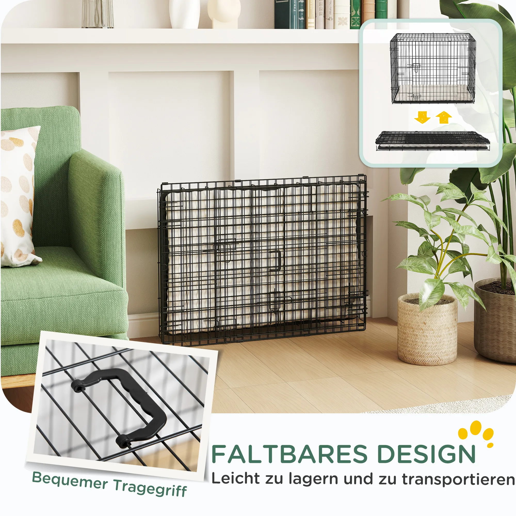 Deze handige hondenbox van [BRAND NAME] is perfect voor kleine honden. Met een verwijderbaar en wasbaar kussen voor optimaal comfort, een gemakkelijk schoon te maken bak voor hygiëne en een opvouwbaar ontwerp met handige draaggreep, is deze hondenbench ideaal voor puppytraining, als veilige toevluchtsoord voor oudere honden of gewoon voor een welverdiende pauze.